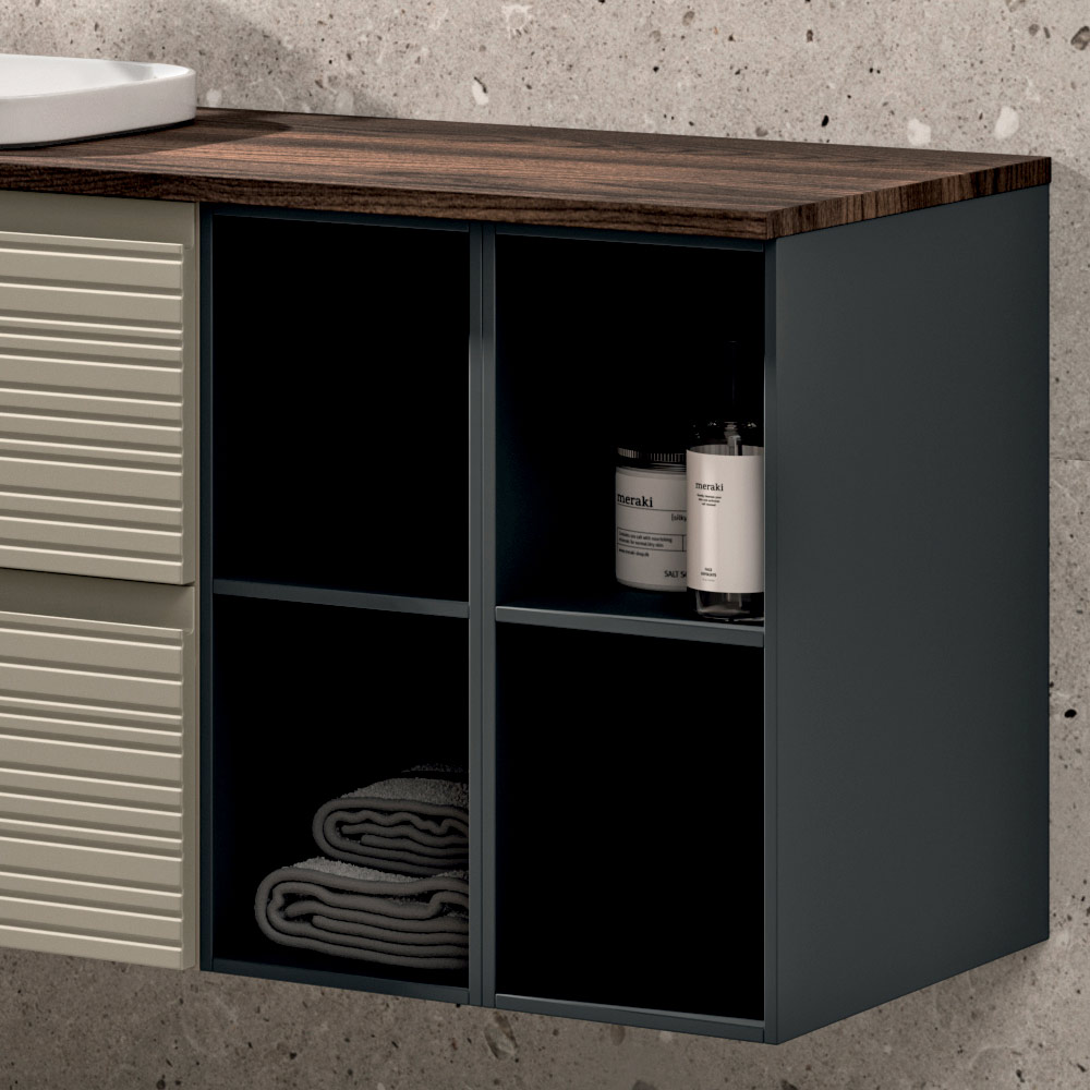 Një propozim modern dhe dizajner për mobilje banjoje , ideal për ata që kërkojnë një zgjidhje të plotë dhe të gjithanshme me një ndikim të fortë estetik, të aftë të përmirësojë çdo mjedis bashkëkohor banjoje.