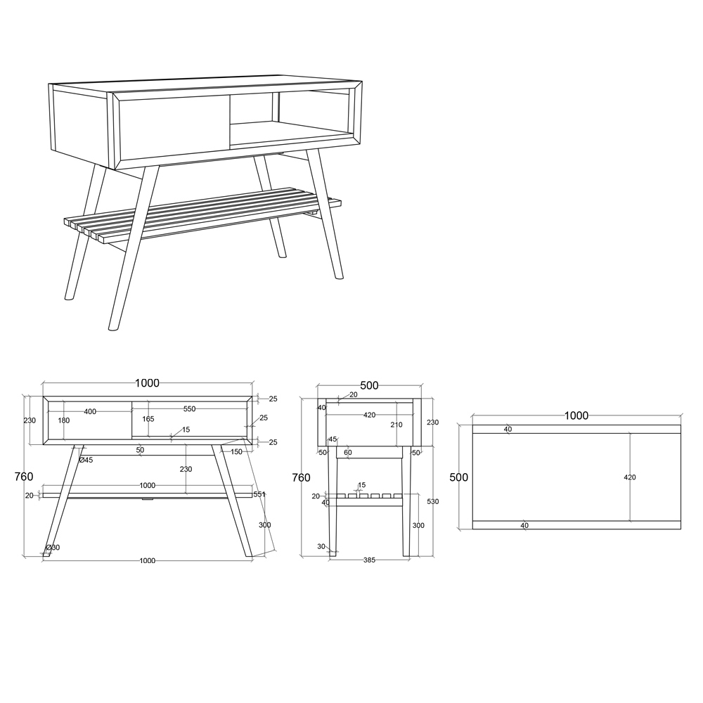 dollap dyshemeje prej dru tik natyral të ricikluar me sirtar në