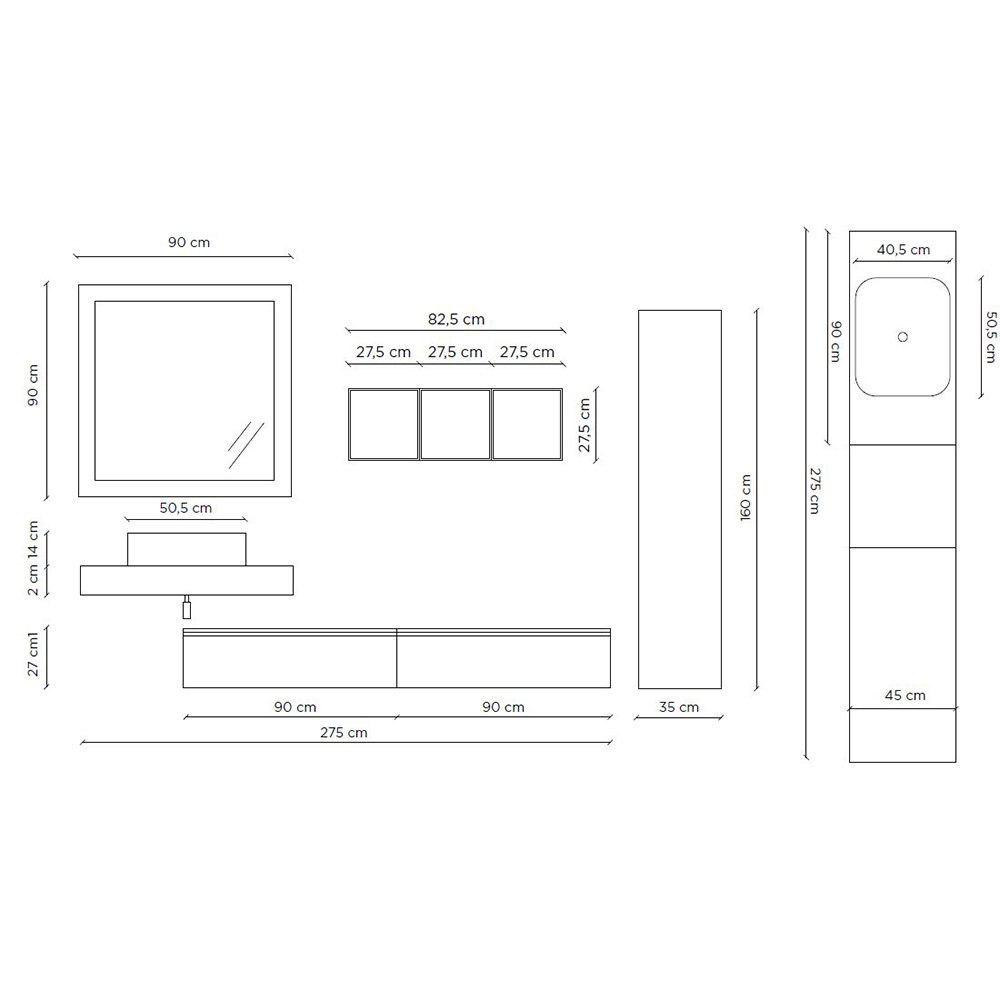 Pasqyra: L 90cm x D 2cm x H 90cm