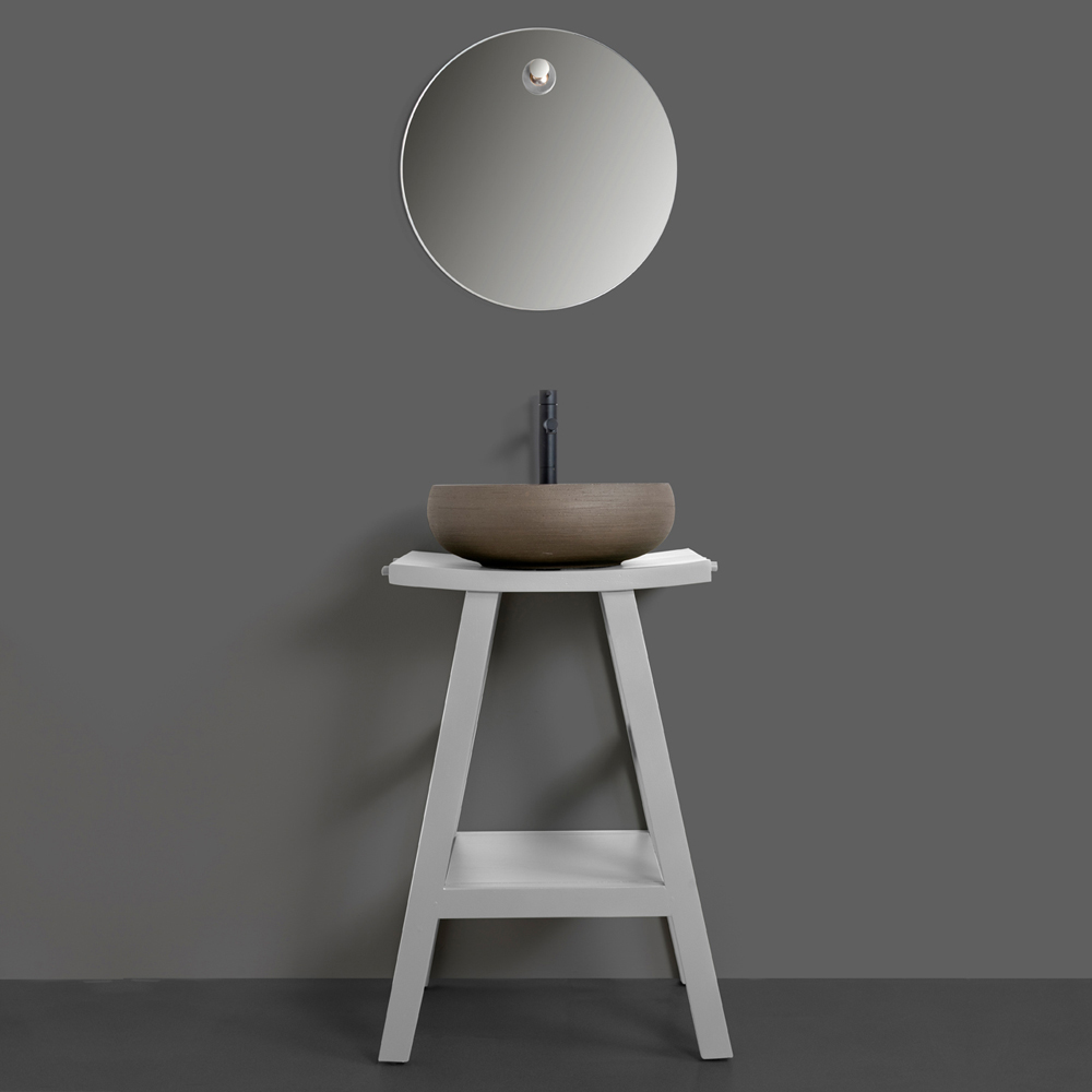 Kompozim mobiljesh për banjo me aksesorë tavani dhe lavaman balte.