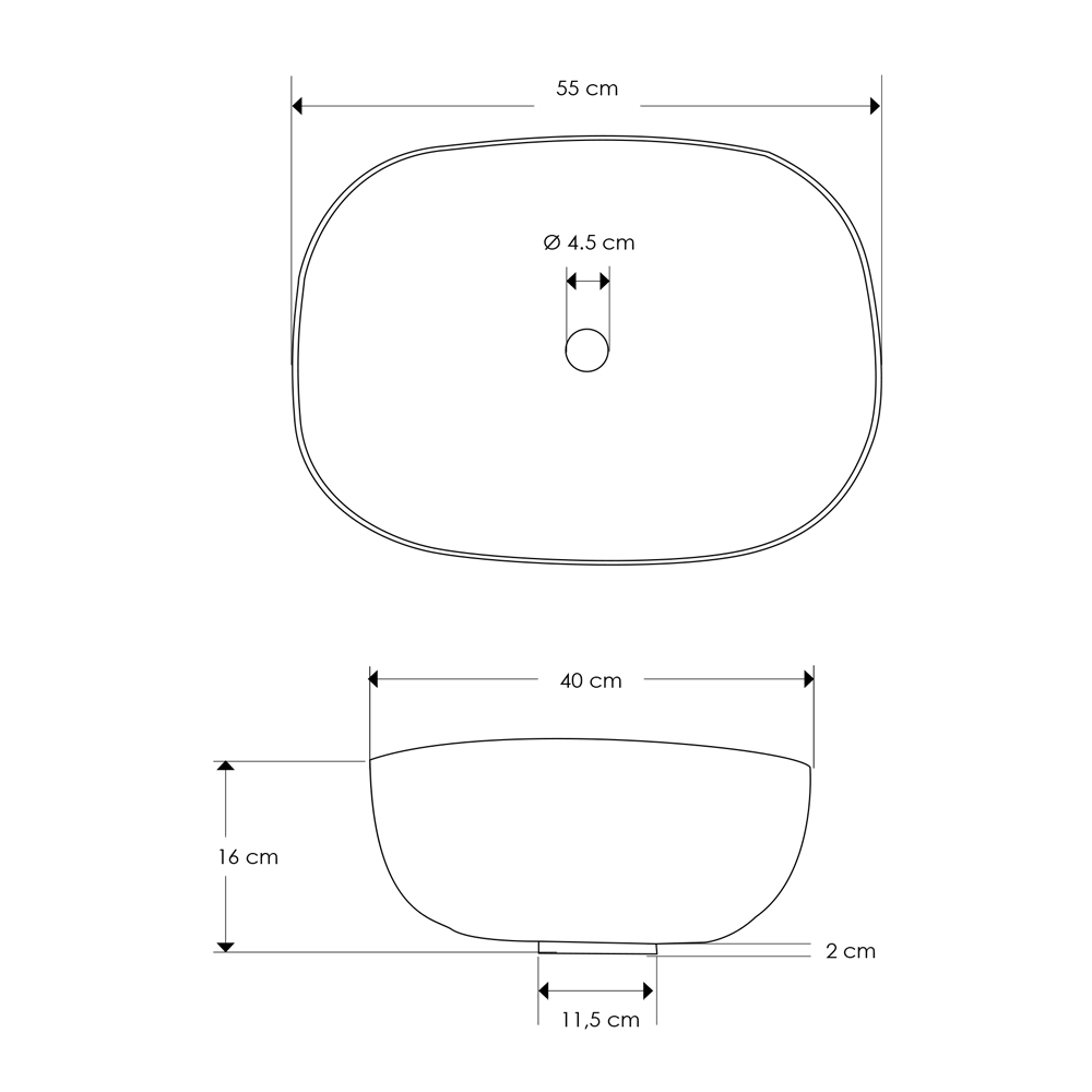 dizajn thelbësor. Përbërja përfshin:- kabineti i banjës - W 150 x 50 x H 76 cm;
