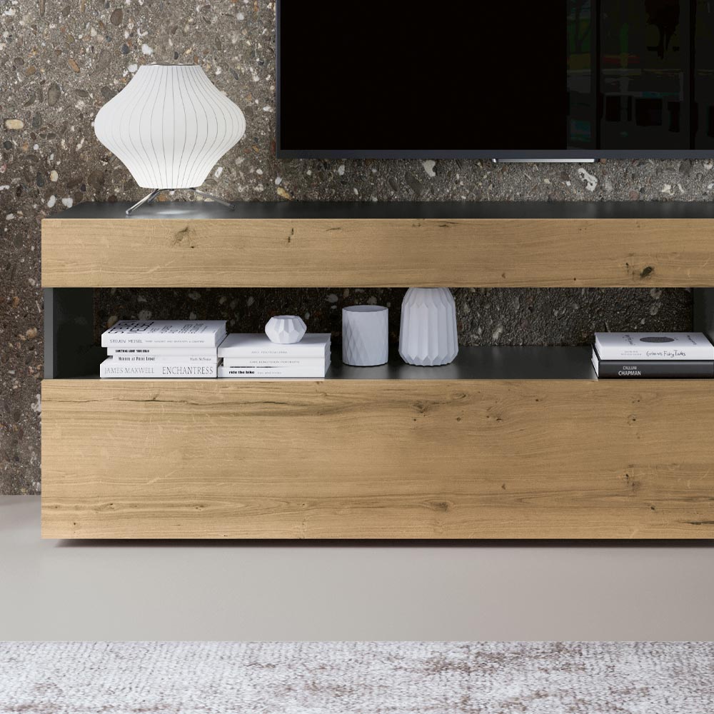 - Njësia e murit të televizorit prej lisi: gjatësia 120 cm x Thellësia 42 cm x Lartësia 40 cm