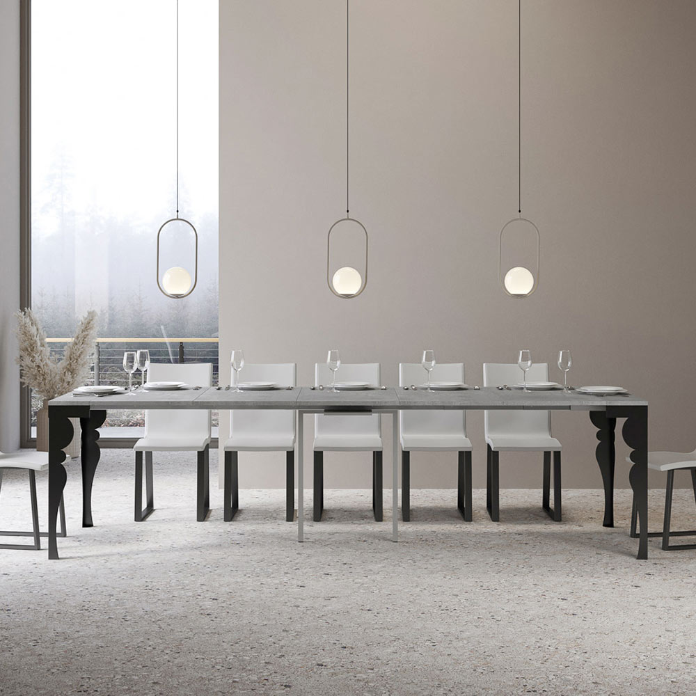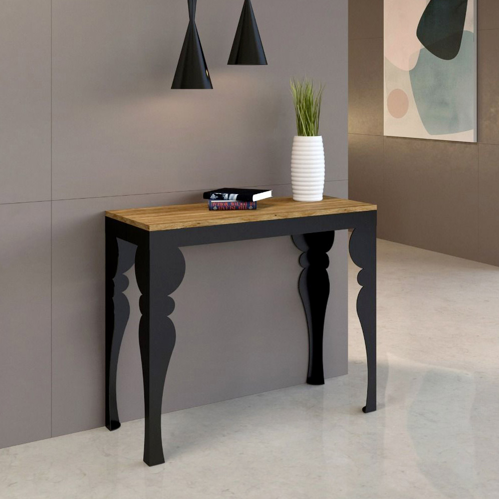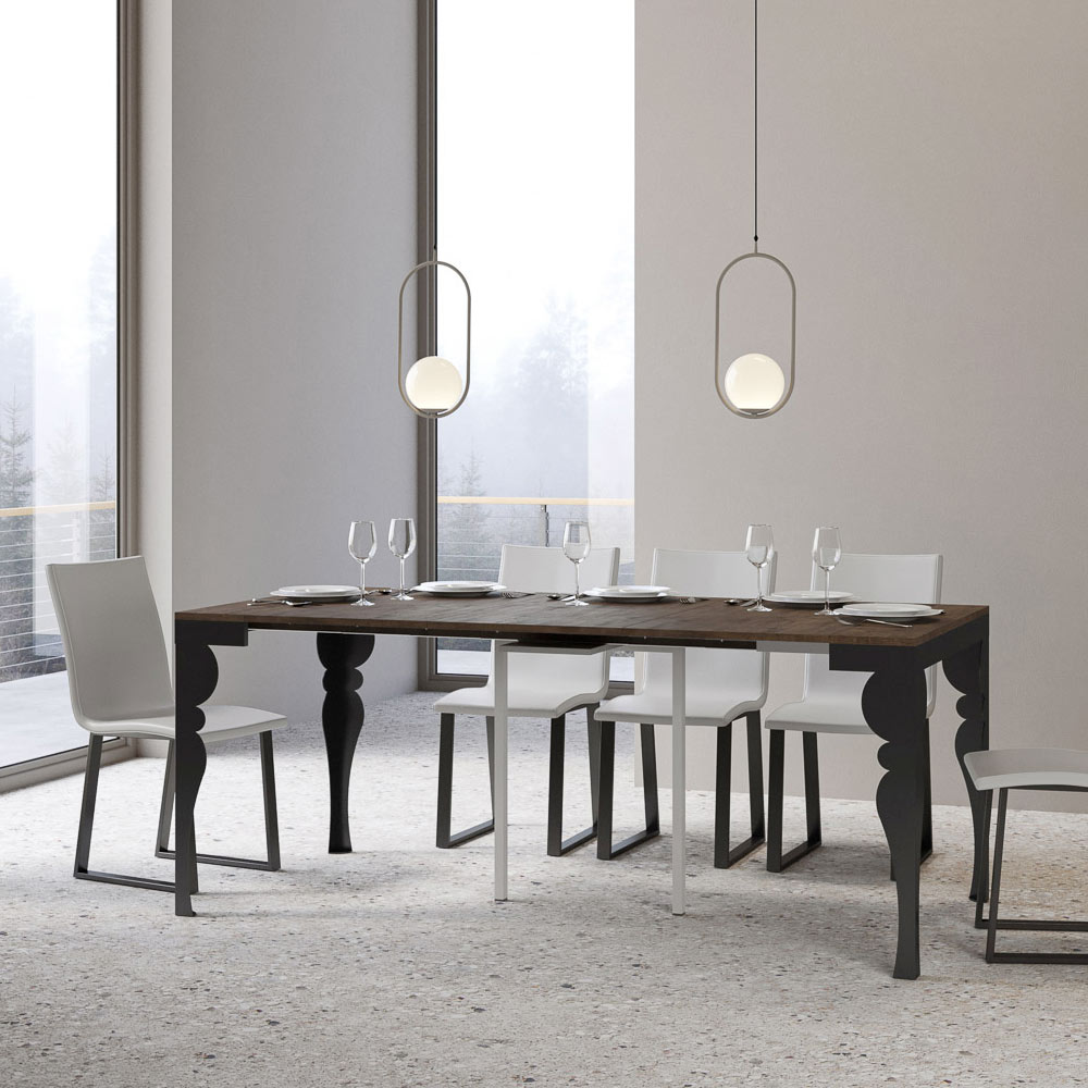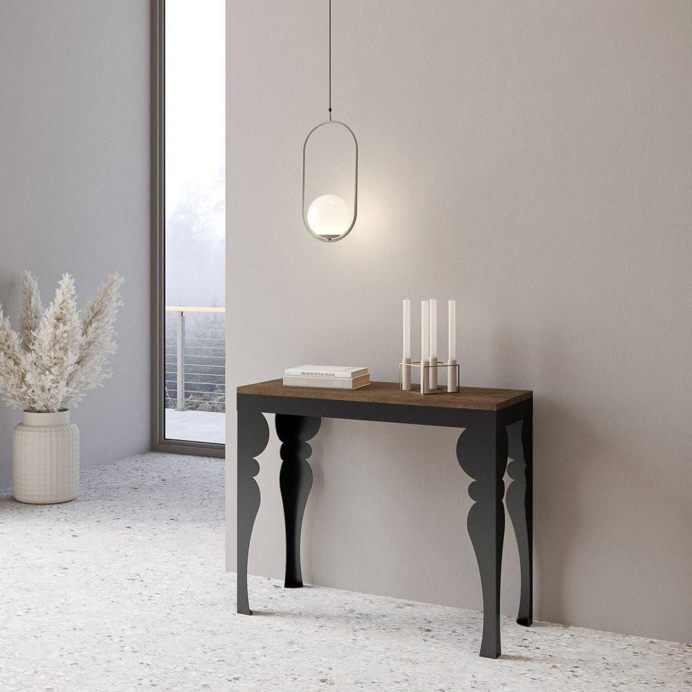 Kontrasti midis grisë antracit të këmbëve dhe drurit të pjesës së sipërme krijon një dialog vizual stimulues, duke e bërë këtë pjesë të mobiljeve një zgjedhje të sofistikuar për çdo mjedis. E përsosur si mobilje hyrëse ose si një sipërfaqe shtesë në dhomën e ndenjes, tastiera transformohet lehtësisht, duke u shtrirë për t'u bërë pjesa qendrore e një dhome ngrënieje, e gatshme për të pritur momente të paharrueshme.