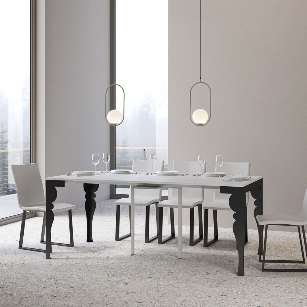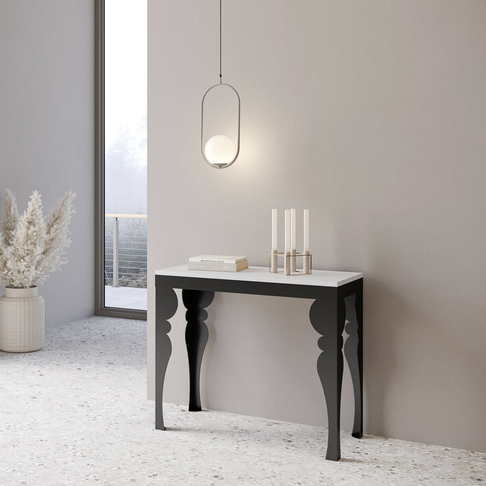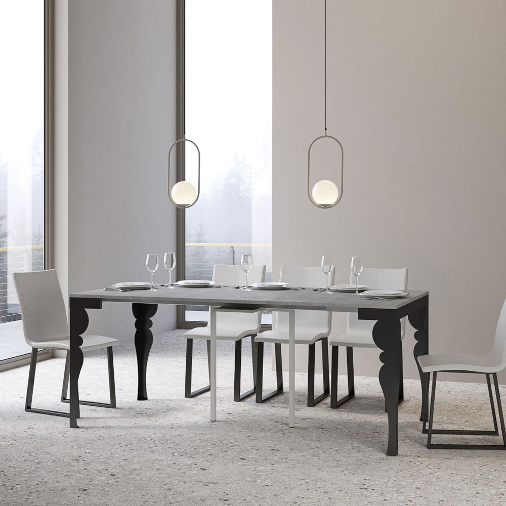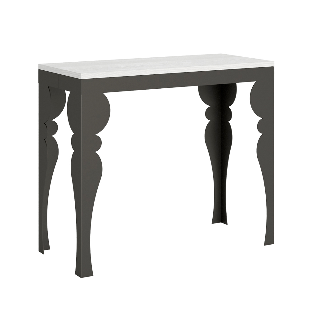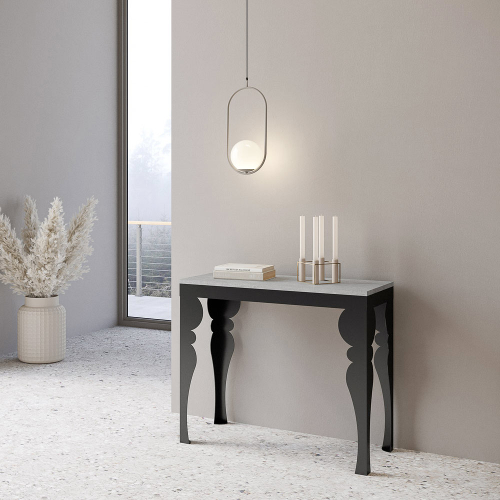 Kontrasti midis grisë antracit të këmbëve dhe drurit të pjesës së sipërme krijon një dialog vizual stimulues, duke e bërë këtë pjesë të mobiljeve një zgjedhje të sofistikuar për çdo mjedis. E përsosur si mobilje hyrëse ose si një sipërfaqe shtesë në dhomën e ndenjes, tastiera transformohet lehtësisht, duke u shtrirë për t'u bërë pjesa qendrore e një dhome ngrënieje, e gatshme për të pritur momente të paharrueshme.