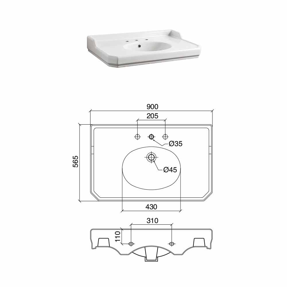 Nausica është një tastierë elegante e përbërë nga një lavaman lavash qeramik me një spërkatje të gjatë 900 mm, me