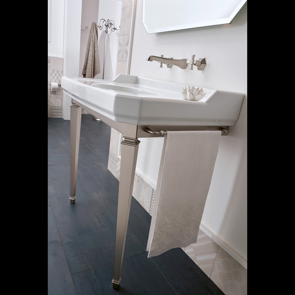 Console banjo e bardhë qeramike e stilit të cilësisë së mirë me këmbë metalike Nausica, e bërë në Itali.