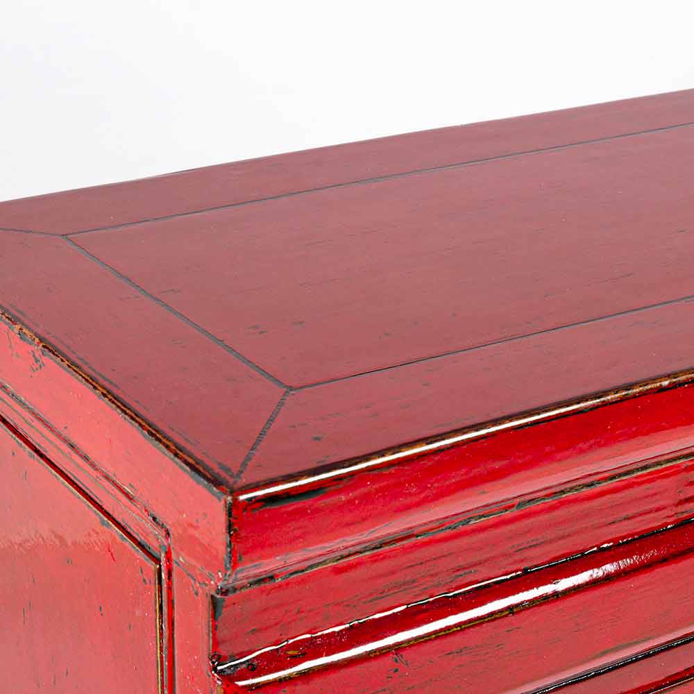 Tavolinë e konzolës së kuqe në dru të elmit me 3 sirtarë në modelin e cilësisë së mirë.