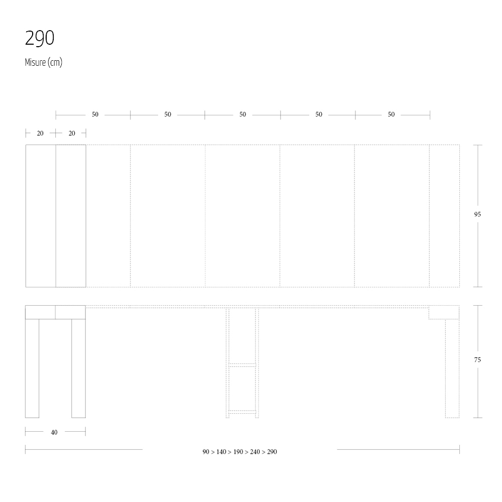 Konsolë e zgjatur deri në 290 cm në Dru Melamine Made in Italy