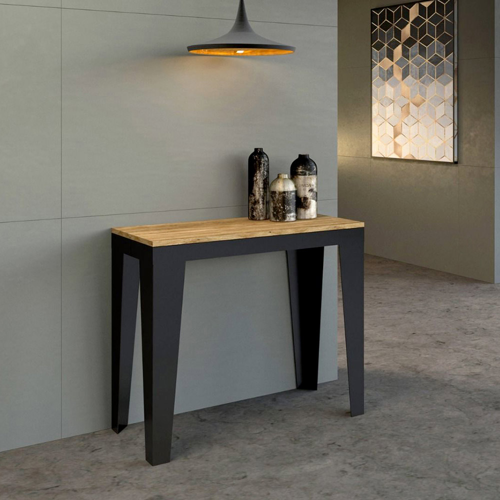 Kjo tavolinë konsol është e përkryer për hapësira të vogla ose si një veçori dekorative në hyrje, duke siguruar një sipërfaqe thelbësore për çelësat, telefonat ose sendet dekorative. Por magjia ndodh kur zbulohet funksioni i saj i zgjatur , duke u shndërruar lehtësisht në një tavolinë të gjerë ngrënieje, gati për të mirëpritur mysafirët për darka ose bashkime familjare.