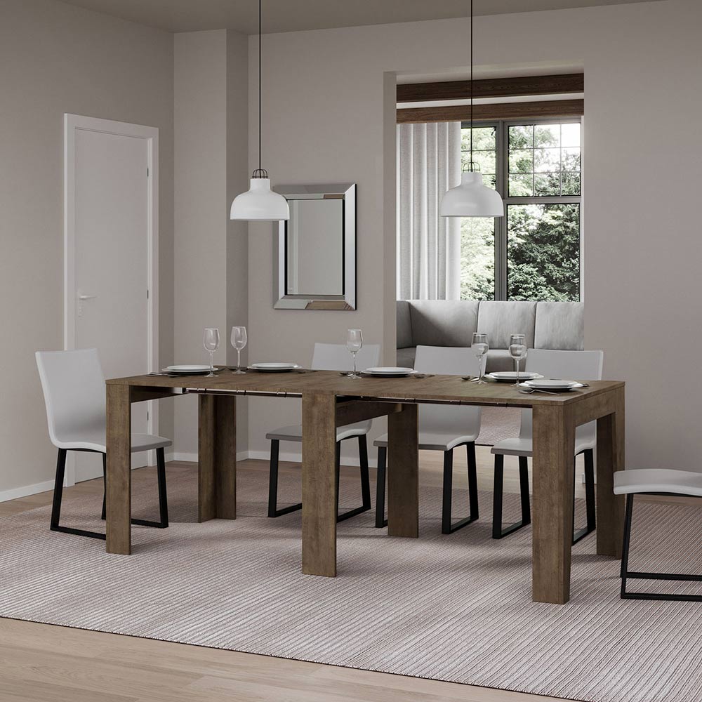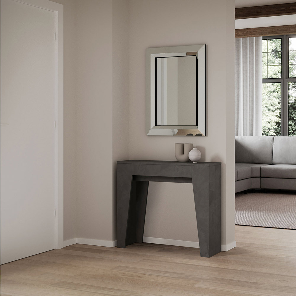 Kjo konsolë e zgjatur është thelbi i dizajnit funksional dhe minimalist. Forma e saj elegante dhe linjat e pastra e bëjnë atë një mobilje të gjithanshme , ideale për çdo hapësirë nga hyrja në dhomën e ndenjes, duke ofruar një imazh hapësire dhe rregulli . Konzola zgjerohet lehtësisht, duke u shndërruar nga një mobilje e matur në një tavolinë ngrënieje praktike, perfekte për të pritur miqtë dhe familjen në raste të veçanta. Kjo shkathtësi e bën atë një zgjedhje ideale për ata që jetojnë në hapësira të vogla, por nuk duan të heqin dorë nga funksionaliteti dhe stili .