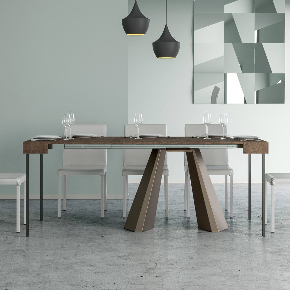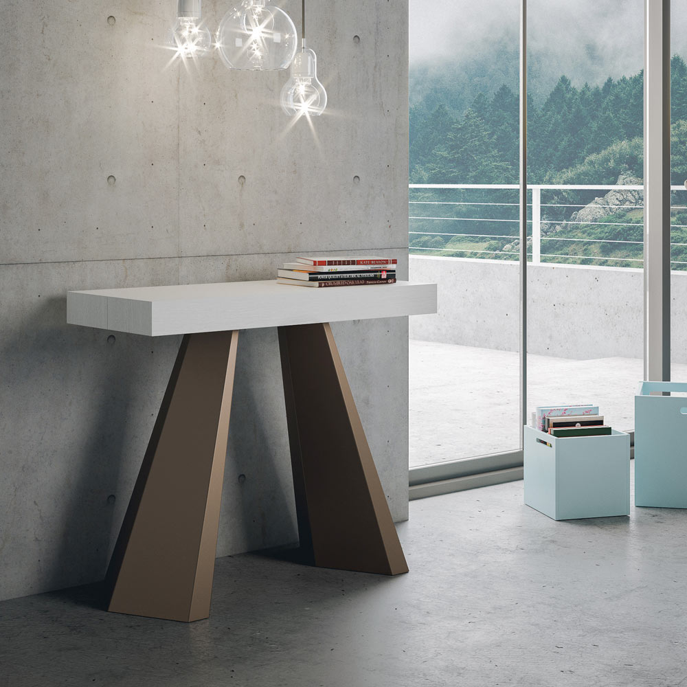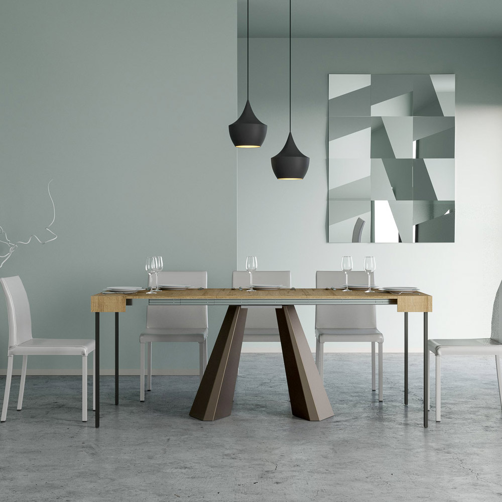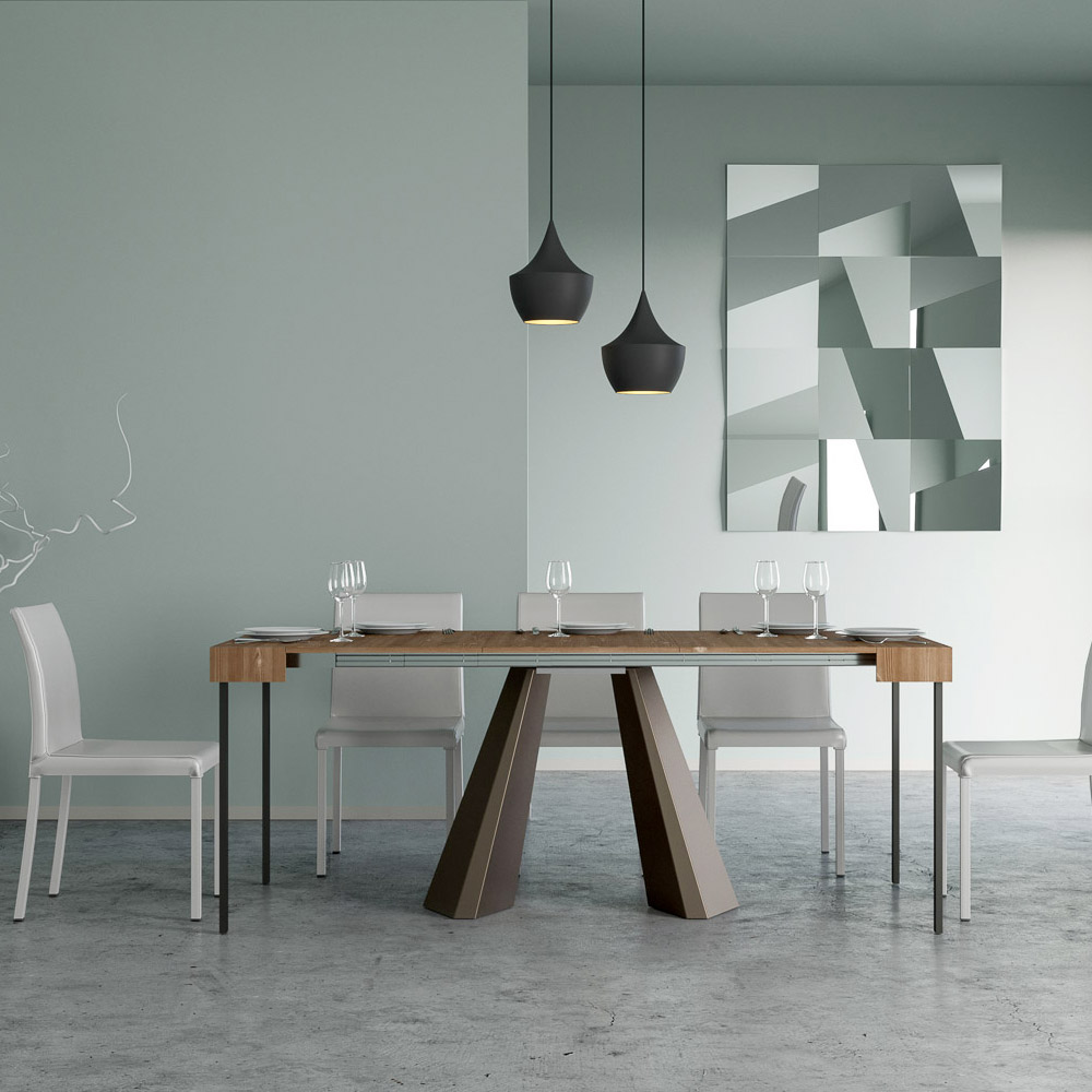 E veçanta e kësaj konsole qëndron në këmbët e saj, të cilat kujtojnë format gjeometrike të arkitekturës moderne , duke ofruar një pamje skulpturore dhe avangarde . Falë sistemit të saj të zgjatshëm, kjo pjesë transformon çdo hapësirë nga e thjeshtë në të jashtëzakonshme , duke u shtrirë për të akomoduar momentet e shoqërimit ose për të siguruar atë sipërfaqe shtesë që ju nevojitet.