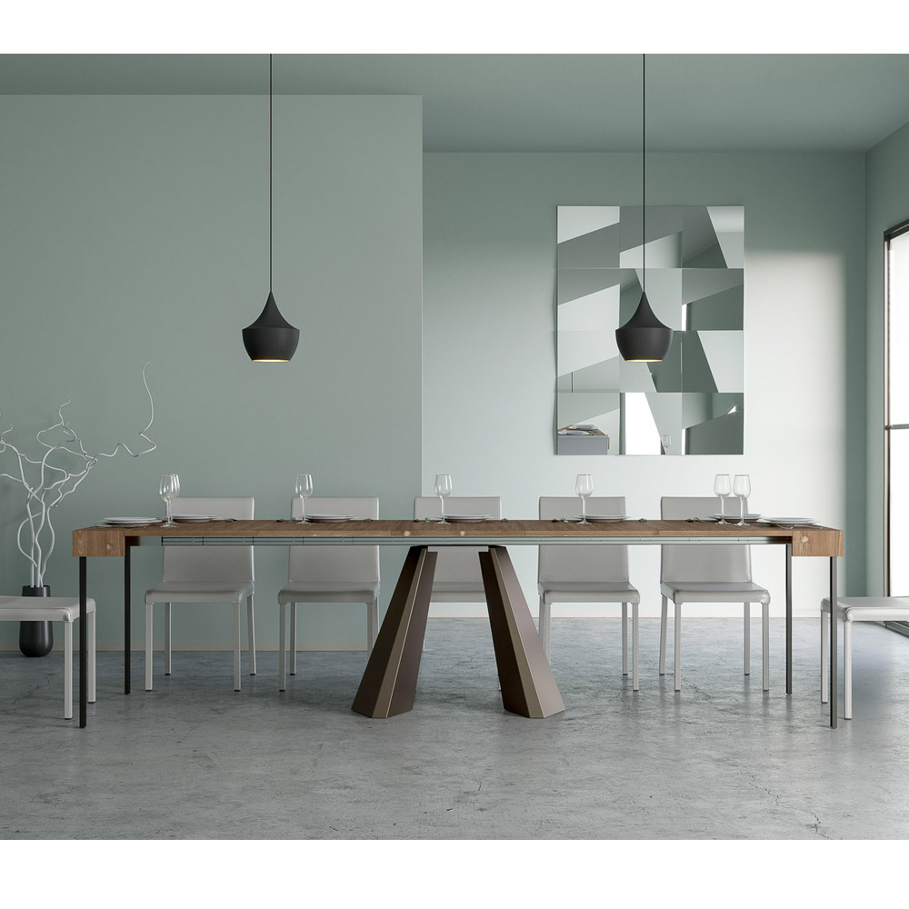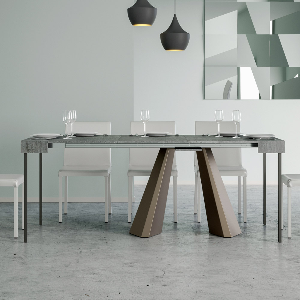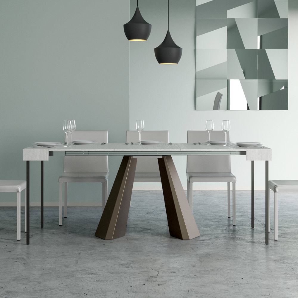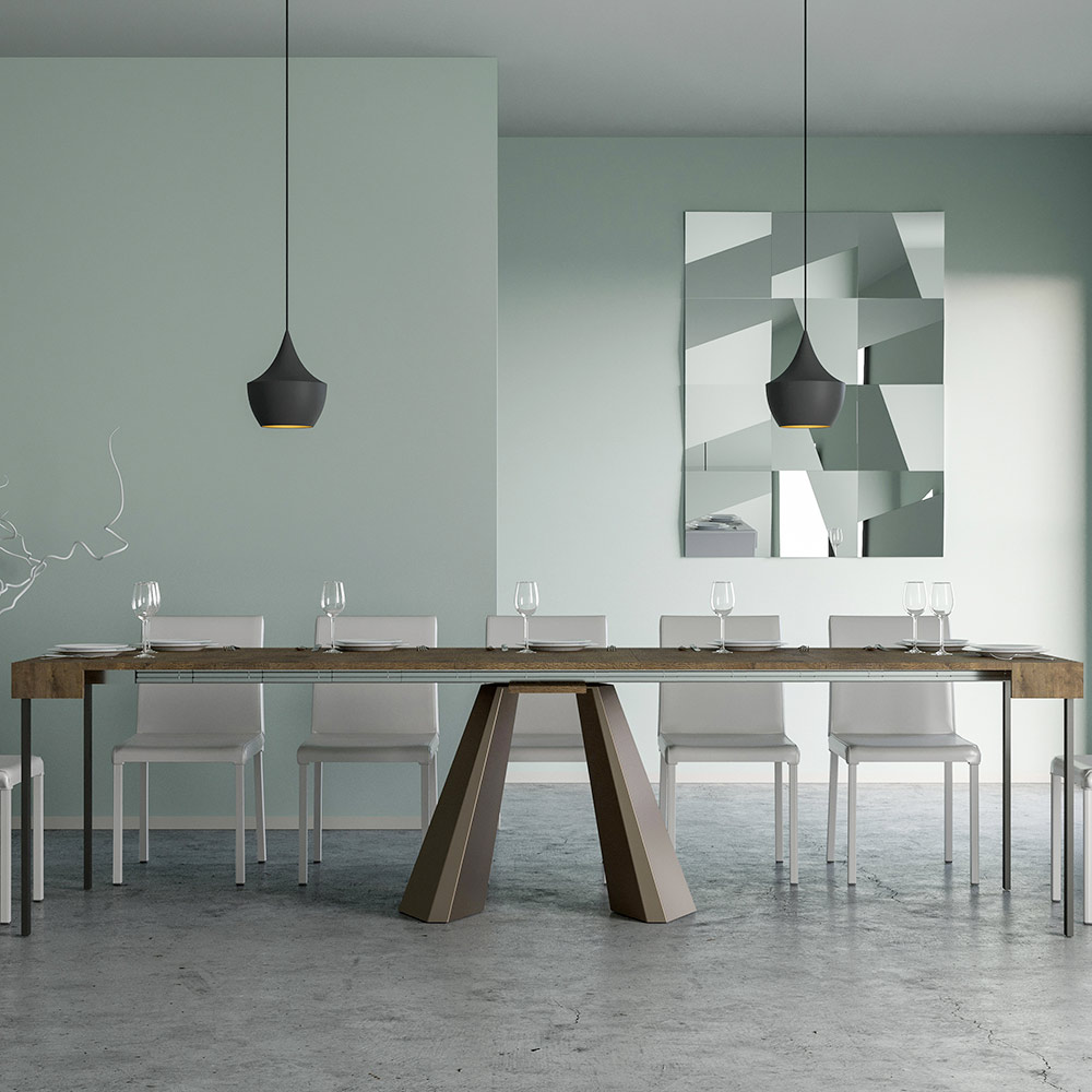 E veçanta e kësaj konsole qëndron në këmbët e saj, të cilat kujtojnë format gjeometrike të arkitekturës moderne , duke ofruar një pamje skulpturore dhe avangarde . Falë sistemit të saj të zgjatshëm, kjo pjesë transformon çdo hapësirë nga e thjeshtë në të jashtëzakonshme , duke u shtrirë për të akomoduar momentet e shoqërimit ose për të siguruar atë sipërfaqe shtesë që ju nevojitet.