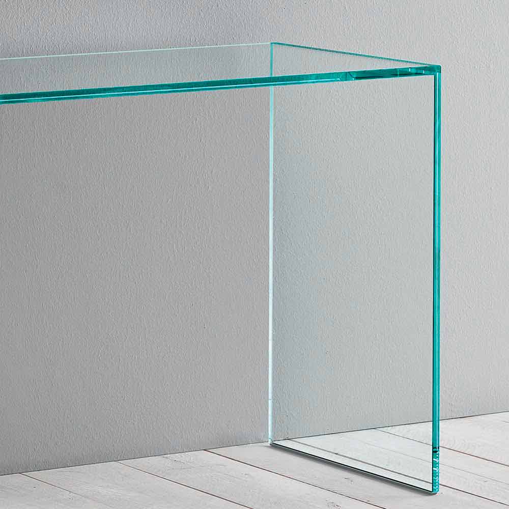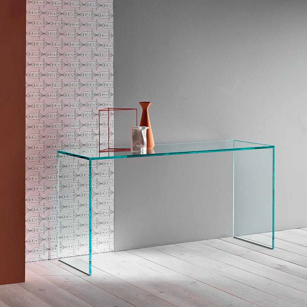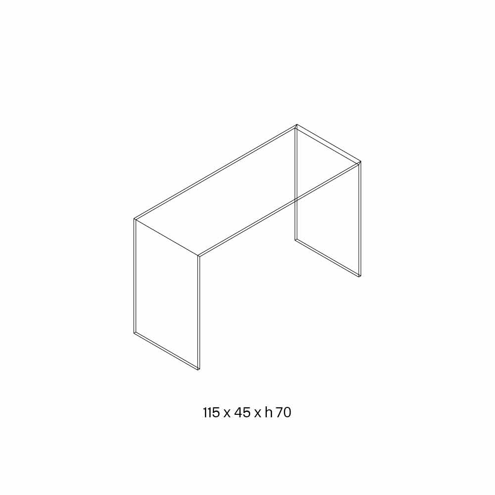 Konsolë është një mobilje që mund të përdoret në mënyrë transversale në kontekste të ndryshme dhe ka një strukturë urë të thjeshtë dhe lineare, tërësisht e bërë prej qelqi ekstra të pastër.