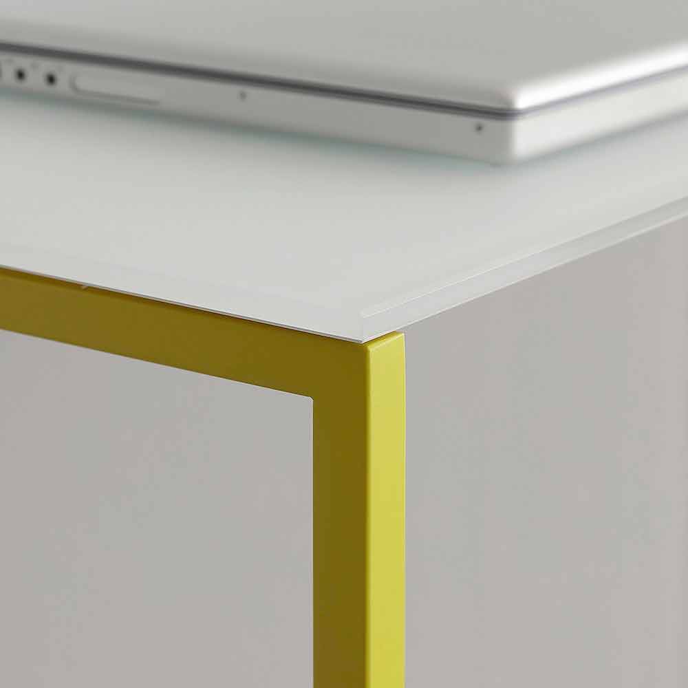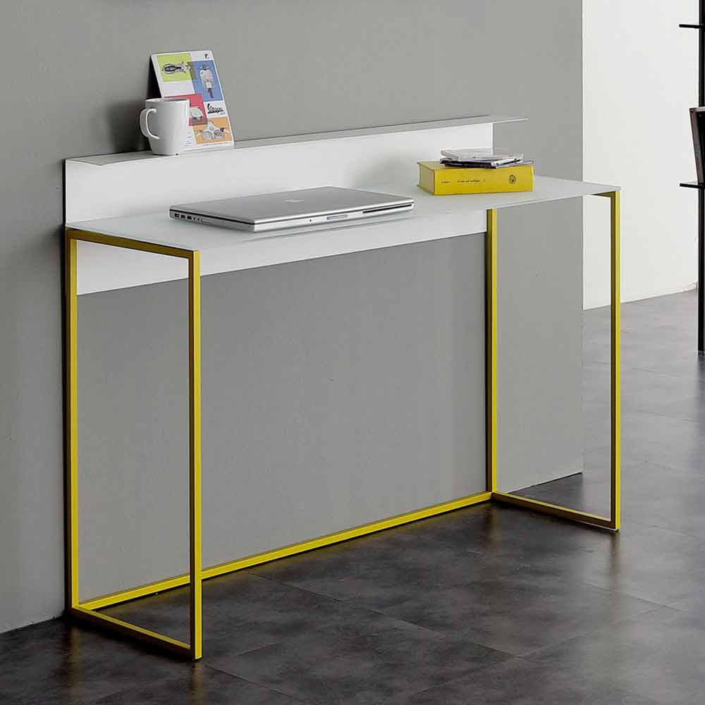 Konsolë për dhomën e ndenjes e prodhuar në Itali me pjesën e sipërme me xham të bardhë me shkëlqim e kompletuar me pamje të pasme të bardhë dhe strukturë metalike të pikturuar në të verdhë . Linjat e thjeshta dhe thelbësore i japin jetë një orendi me një estetik të matur dhe të gjithanshëm, ideale për të revolucionarizuar stilin e dhomave tuaja me një prekje të ngjyrës krijuese dhe avangardë. Mundësia për të zgjedhur midis 3 madhësive të ndryshme lejon që tastiera të plotësojë çdo nevojë duke ju lejuar të pajisni me stil edhe hapësirat më të vogla falë pjesës veçanërisht të ngushtë, e cila është një sipërfaqe ideale mbështetëse për hyrjen ose dhomën e ndenjes, por që e bën këtë të përsosur plotësues për t'u përdorur gjithashtu si një tryezë praktike. Ngjyra e çuditshme dhe e gjallë që karakterizon të gjithë bazën i jep produktit personalitetin e tij të freskët dhe inovativ duke krijuar një kombinim perfekt së bashku me elementin elegant të kristalit.