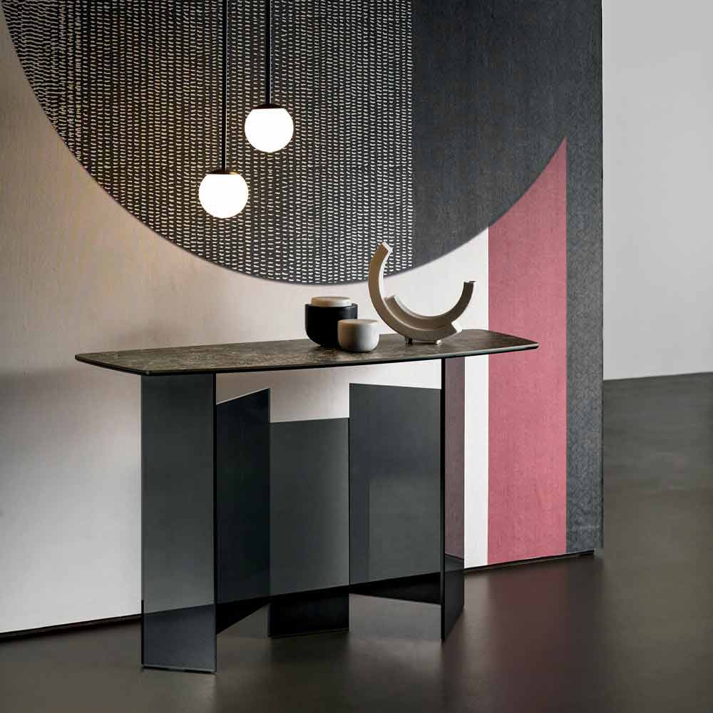 Random është një ngushëllim elegant i dhomës së ndenjes i realizuar me dorë në Itali me materiale me cilësi të lartë . Bëhet plotësisht me një shtresëqeramike dhe qelqi (trashësi 12/8 + 5 mm) dhe një gotë smokey ose ekstraslear .