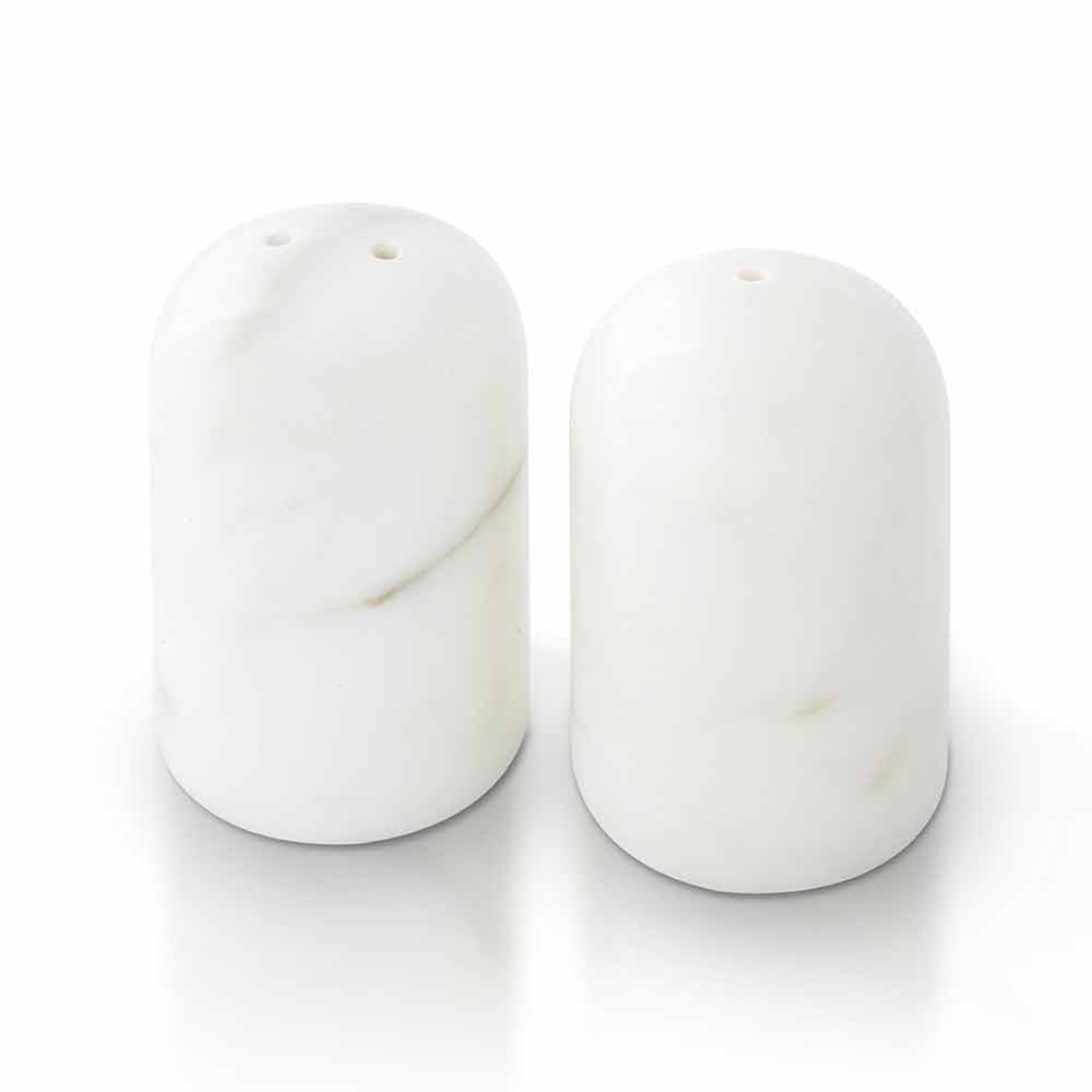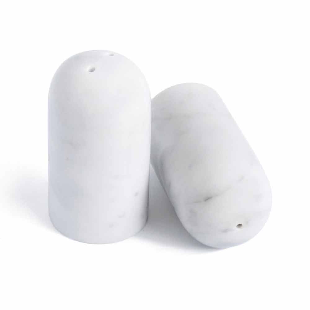 Këto enë kuzhine për kripë dhe piper janë karakterizuar nga përdorimi i mermerit të bardhë Carrara dhe të zimermeriMarquinia dhe janë për t'u konsideruar copa unike si çdo bllok të ndryshon mermeri përdoret nga të tjerët në venat dhe hije. Mermeri i bardhë vjen nga gurorja Poggio Silvestre, një burim i mermerit të cilësisë së parë të klasifikuar që nga shekulli i kaluar, ndërsa mermeri i zi Marquinia nxirret nga guroret spanjolle dhe karakterizohet nga venat e tij të parregullta të bardha ose gri të lehta që i japin mermerit një origjinal dhe pamje moderne Çdo produkt është gjithashtu i punuar me dorë nga profesionistë të specializuar për breza në përpunimin e mermerit.