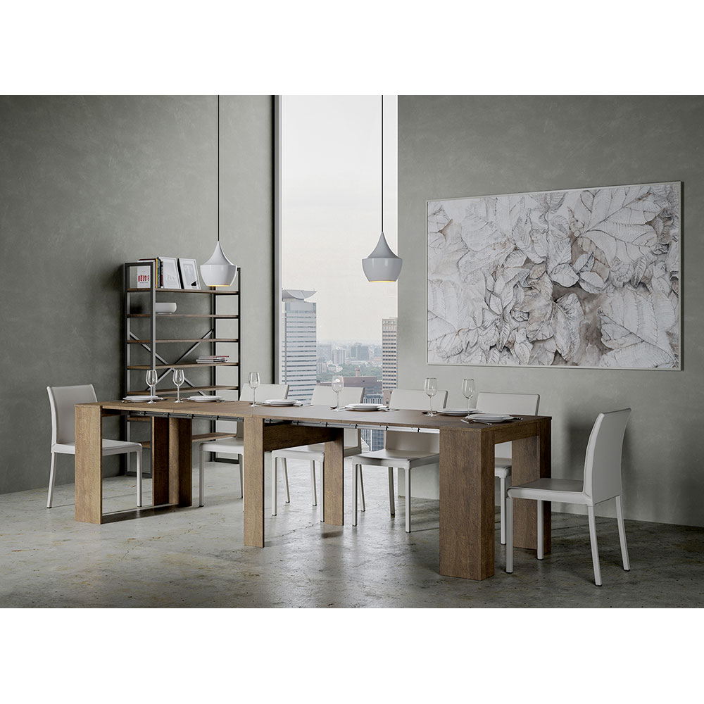 Dizajni i tij funksional përfshin zgjerime të brendshme , një detaj që rrit prakticitetin pa sakrifikuar stilin: në vetëm disa lëvizje, konzola shndërrohet nga një njësi ruajtëse elegante në një tavolinë të gjerë , gati për të mirëpritur mysafirët për darka të paharrueshme ose për të vepruar si një sipërfaqe e madhe magazinimi. . Puna .