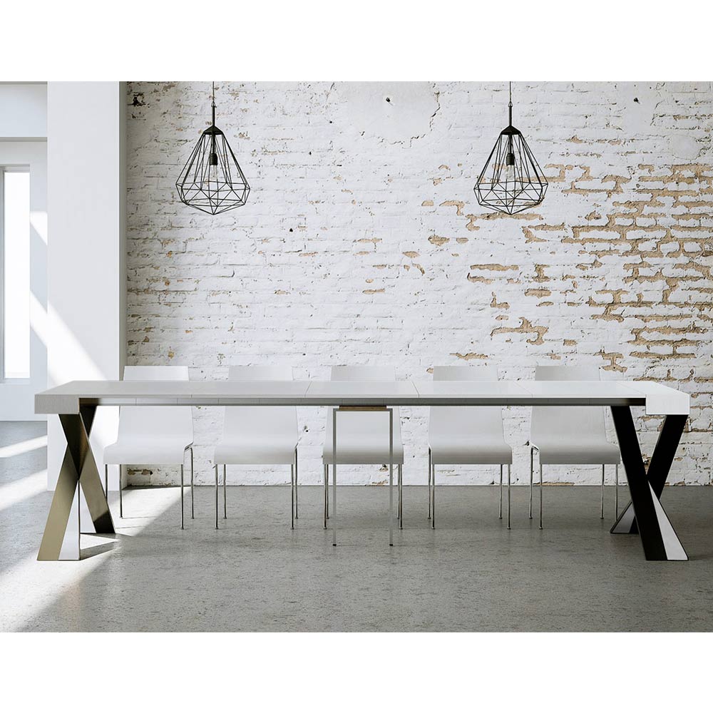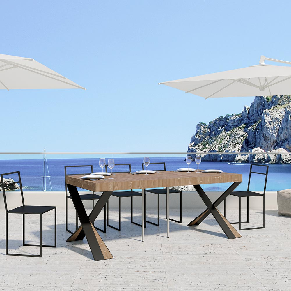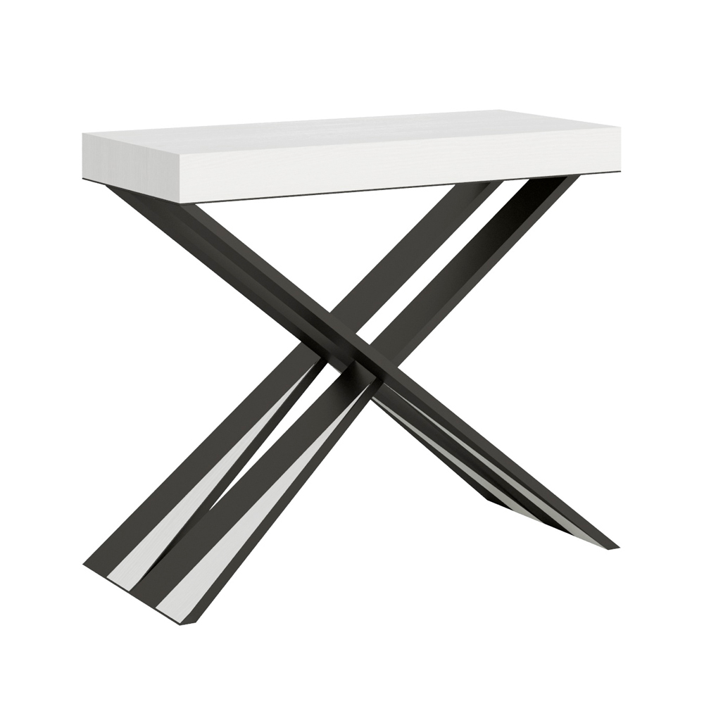 Kjo tastierë e zgjatur mishëron elegancën dhe funksionalitetin në një dizajn tërheqës. Ai përmban një linjë moderne me një bazë në formë X që jo vetëm që ofron mbështetje solide, por gjithashtu shton një prekje origjinaliteti të sofistikuar. Pjesa e sipërme prej druri është një haraç për cilësinë e Made in Italy , e vlerësuar për qëndrueshmërinë dhe aftësinë e saj për t'i rezistuar kalimit të kohës.