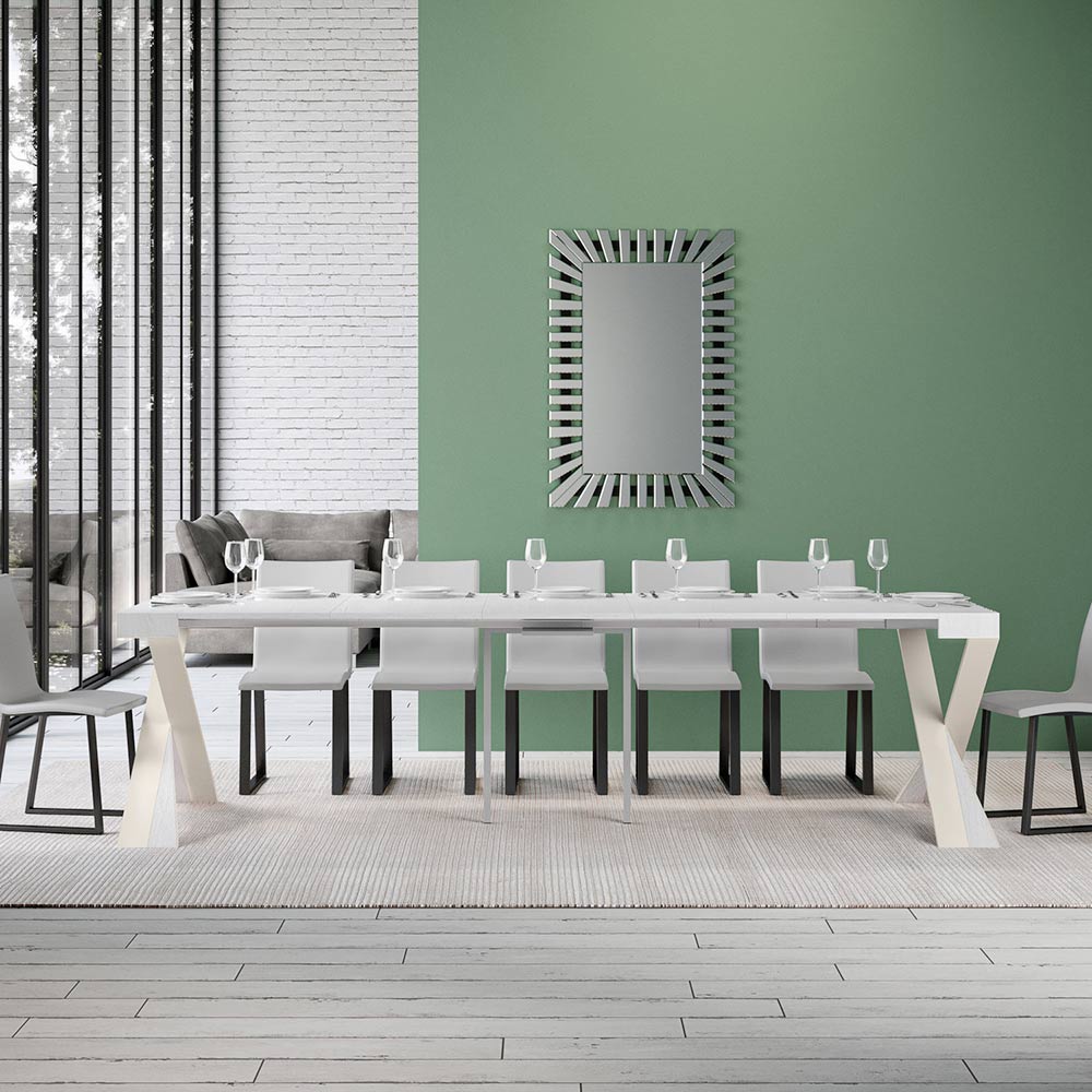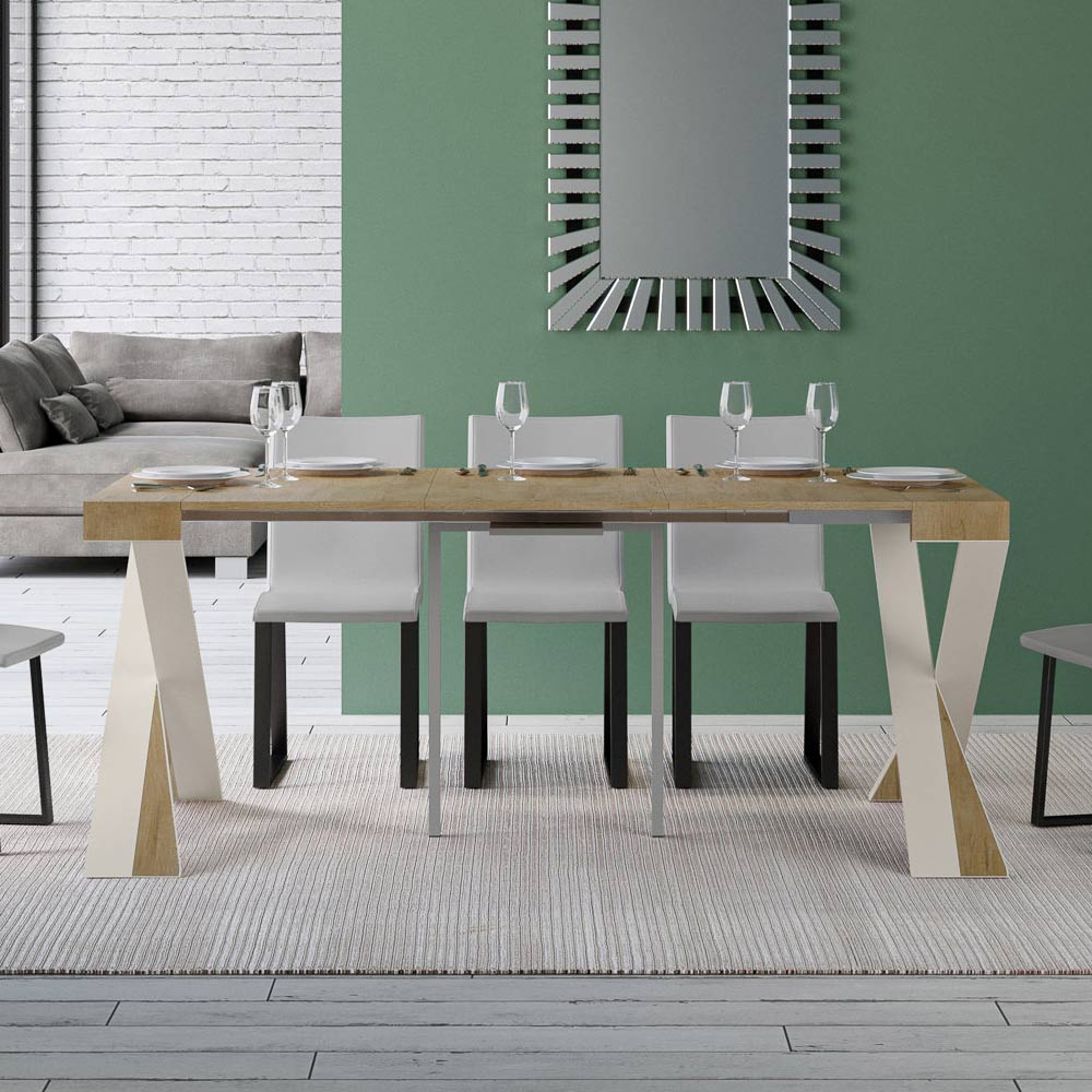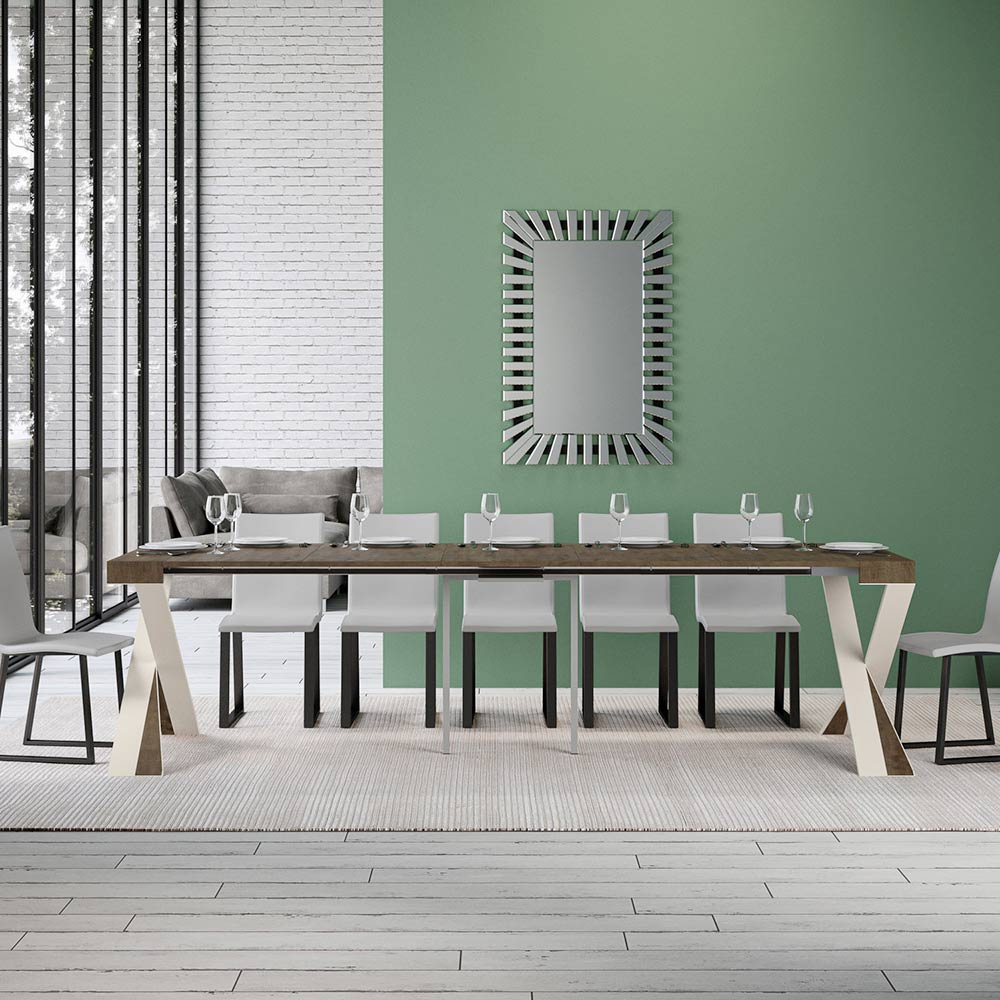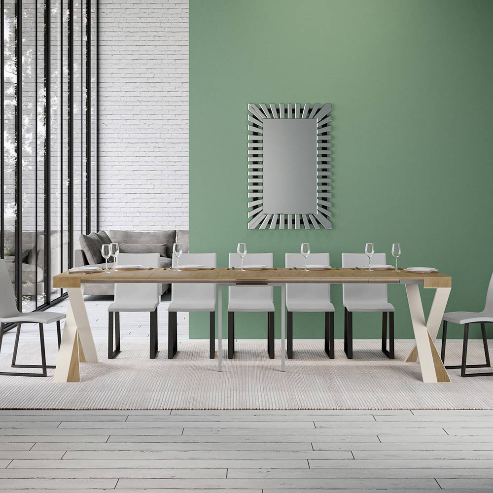 Kjo tastierë e zgjatur mishëron elegancën dhe funksionalitetin në një dizajn tërheqës. Ai përmban një linjë moderne me një bazë në formë X që jo vetëm që ofron mbështetje solide, por gjithashtu shton një prekje origjinaliteti të sofistikuar. Pjesa e sipërme prej druri është një haraç për cilësinë e Made in Italy , e vlerësuar për qëndrueshmërinë dhe aftësinë e saj për t'i rezistuar kalimit të kohës.
