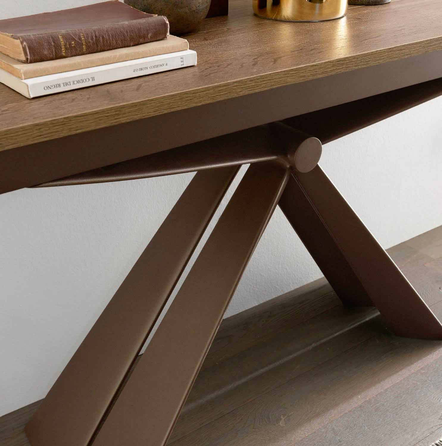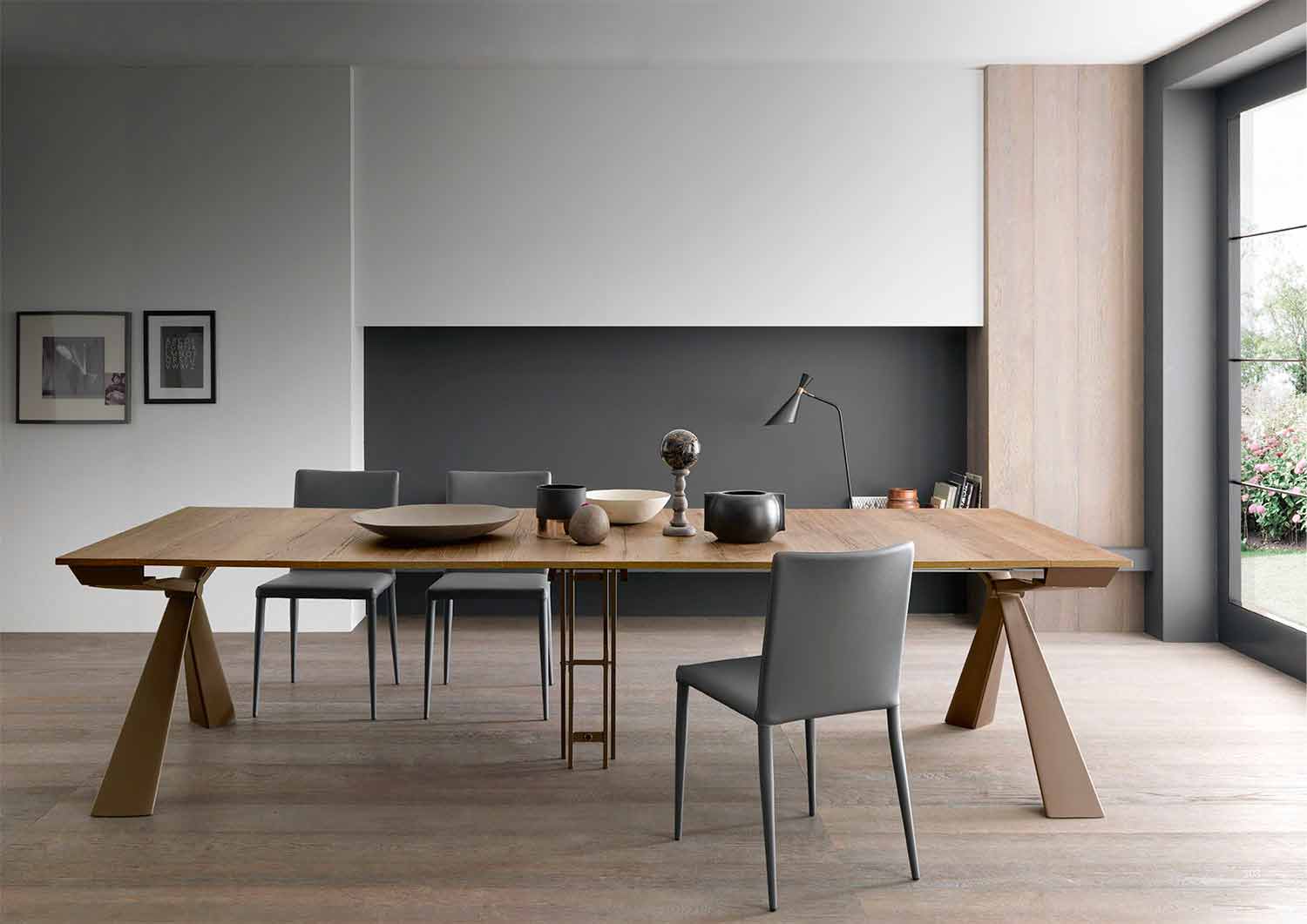 Karakteristika e tij e veçantë është shndërrimi nga tavolina në njëtavolinë ngrënieje falë mekanizmit teleskopik të aluminit. E punuar me dorë në Itali me materiale të cilësisë së lartë dhe 100% e prodhuar në Itali. Karakterizohet nga një majë e zgjatur në dru melamine dhe bazë metalike .