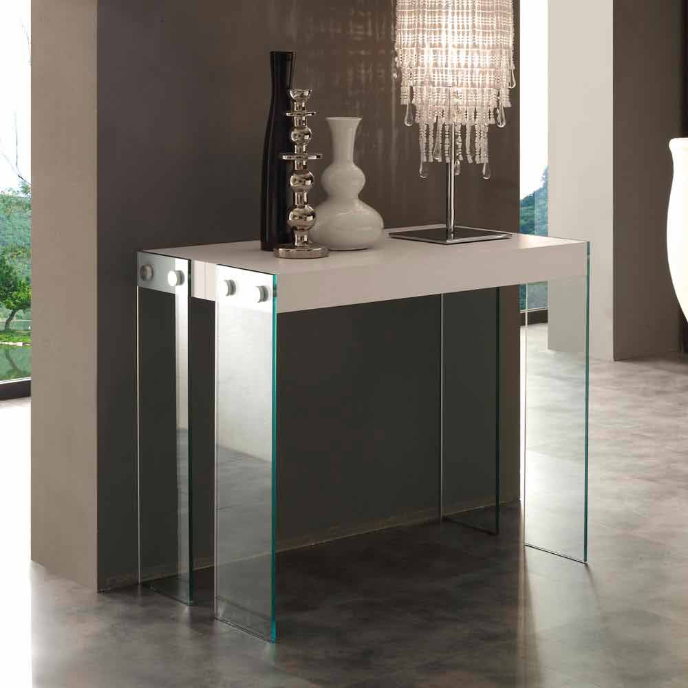 Konzollë moderne me zgjatje Miss, me këmbë xhami të tunduar