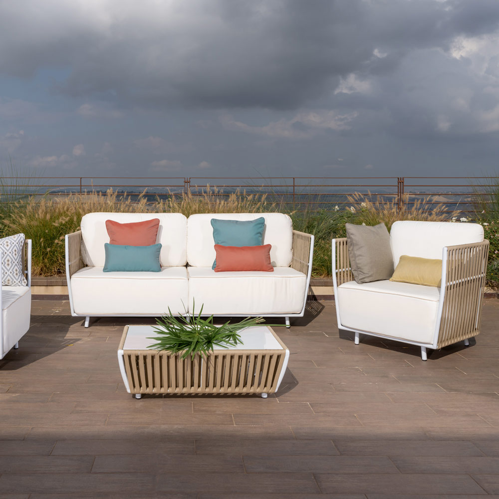 Kjo dhomë ndenjeje me ndenjëse të mëdha është e lehtë për t'u përdorur dhe e fortë, por në të njëjtën kohë ruan një dizajn të pastër dhe thelbësor. Stili i tij modern i jep një karakter të fortë duke e bërë atë të përsosur për arredimin e hapësirave të jashtme si në ambiente private ashtu edhe në ato me kontratë.