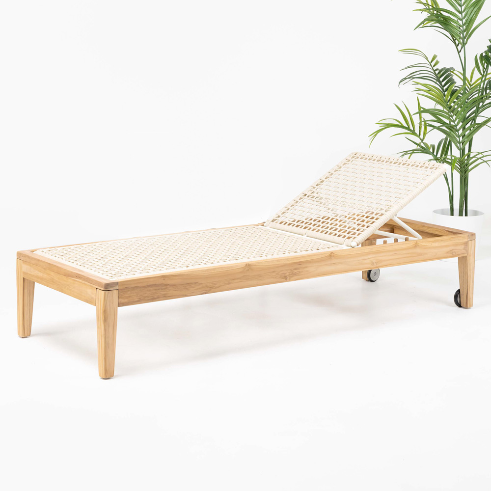 Ky shezlongnë natyrë është bërë me një kornizë dru tik dhe thurje, punuar me dorë nga mjeshtrit më të mirë në në litar Olefin/PPtë cilësisë më të lartë . Ky produkt me linja delikate është perfekt për t'i dhënë ngrohtësi ambienteve të jashtme falë stilit të përjetshëm të drurit të tik.