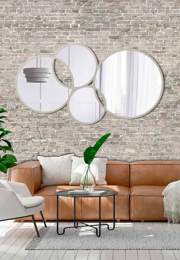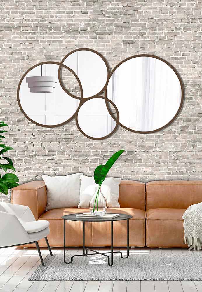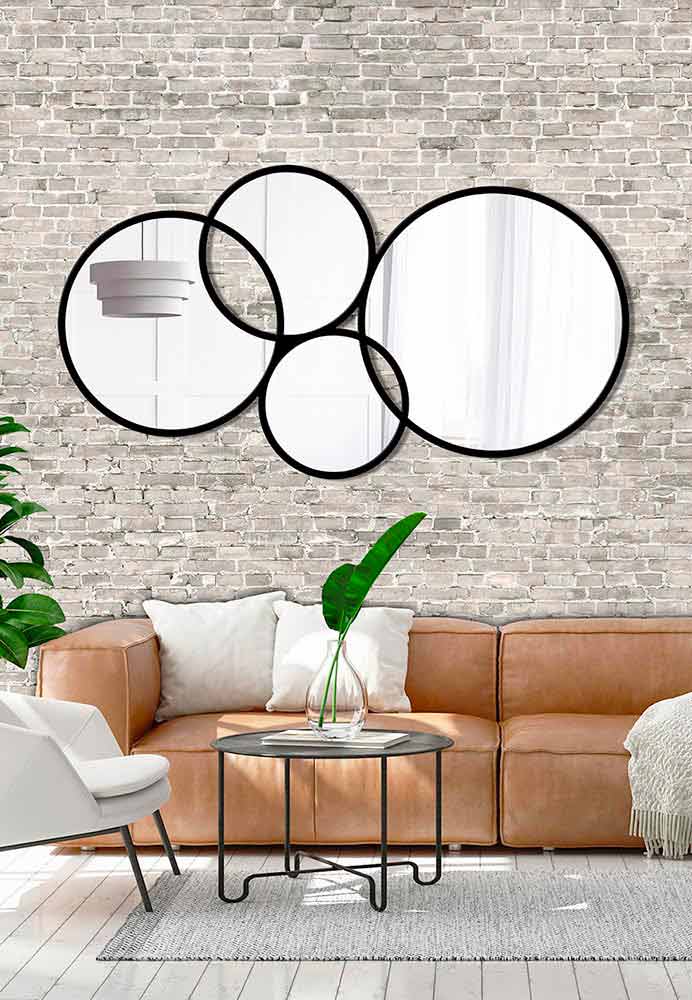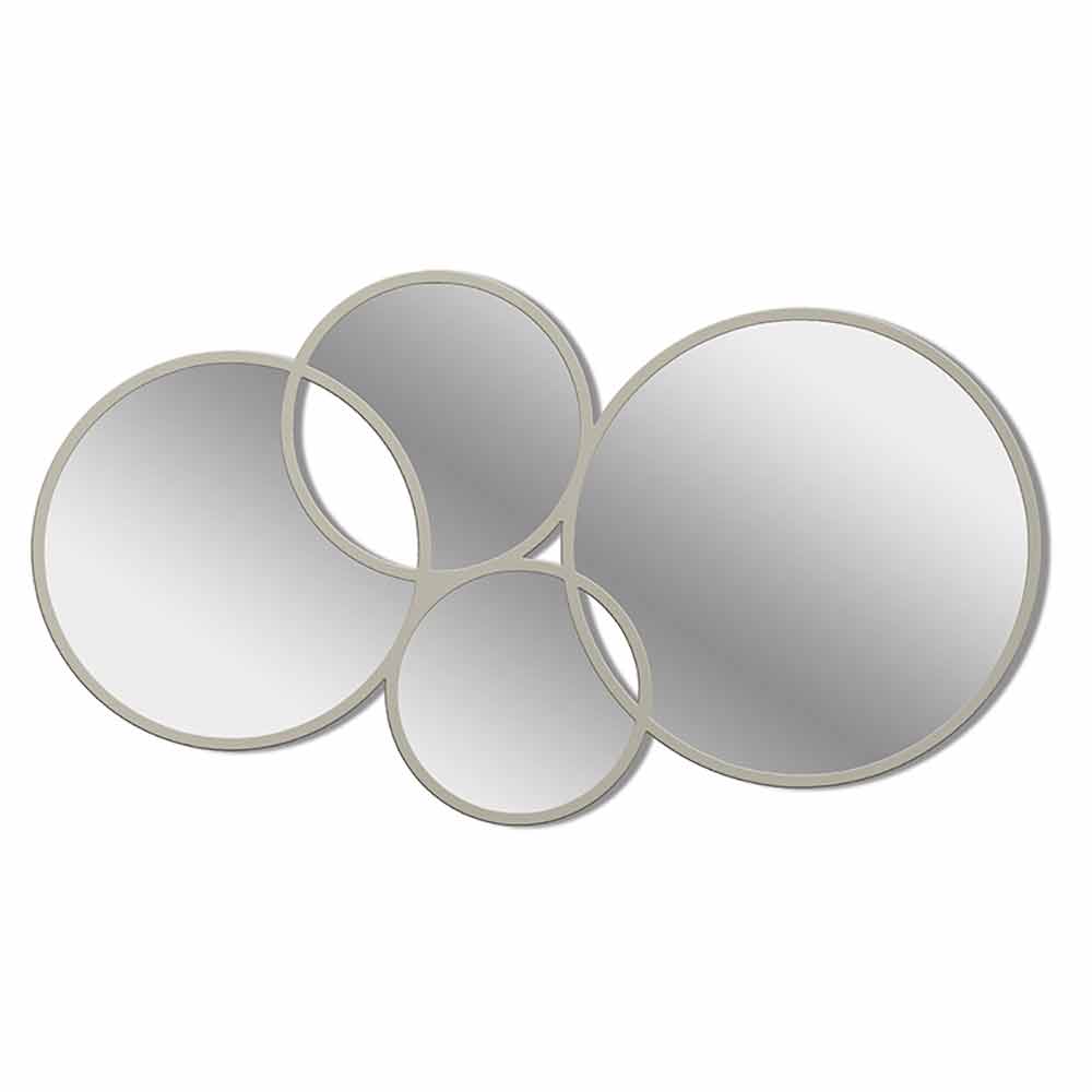 Kjo pasqyrë e murit e shpuar në formë unaze është e përbërë nga katër pasqyra të rrumbullakëta që kryqëzohen me linja elegante dhe forma moderne të kombinuara me një përfundim të rafinuar me llak për një rezultat me një ndikim estetik minimal dhe dekorativ, në një stil unik.