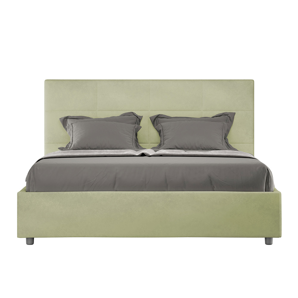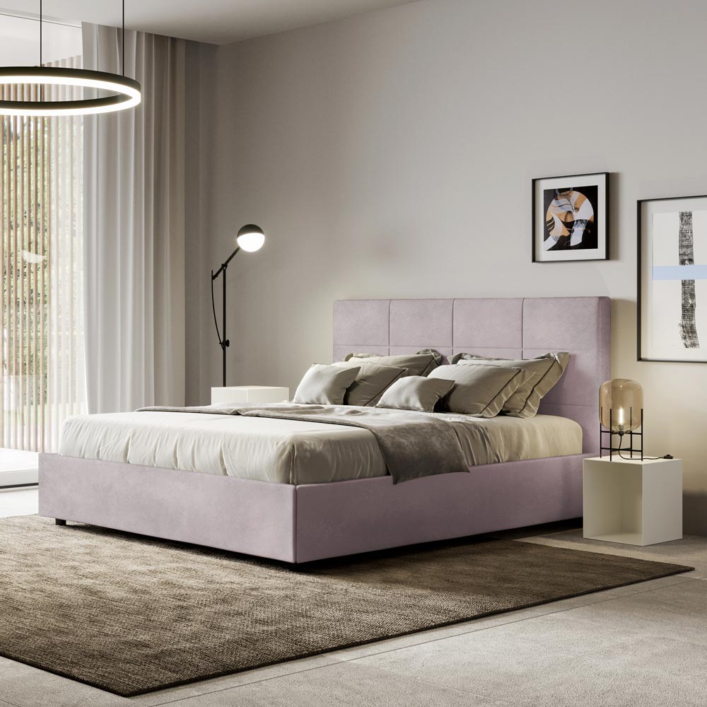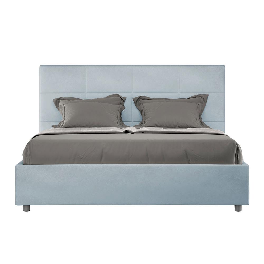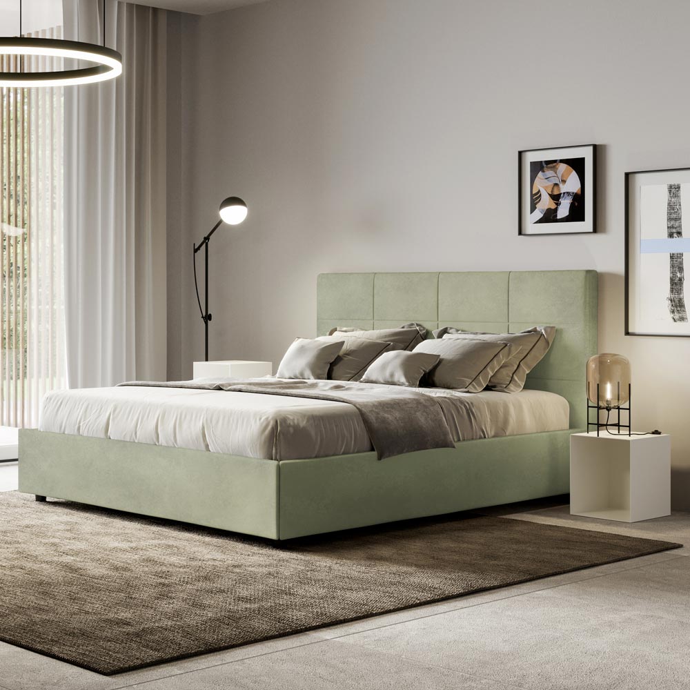 Krevat dopio i mbushur 160x200 cm i bërë nga panele kartoni dhe i mbuluar me mikrofibër , i prodhuar tërësisht në Itali. Ky krevat, me kornizën e tij të mbushur, është shembulli i përsosur se si eleganca dhe rehatia mund të kombinohen në një mobilje të vetme. Ky model karakterizohet nga koka e shtratit e pasuruar meModele gjeometrike drejtkëndëshe . I mbuluar me mikrofibër, është i lehtë për t'u mbajtur i pastër: përdorni vetëm një leckë mikrofibre për pastrim të shpejtë dhe efektiv.