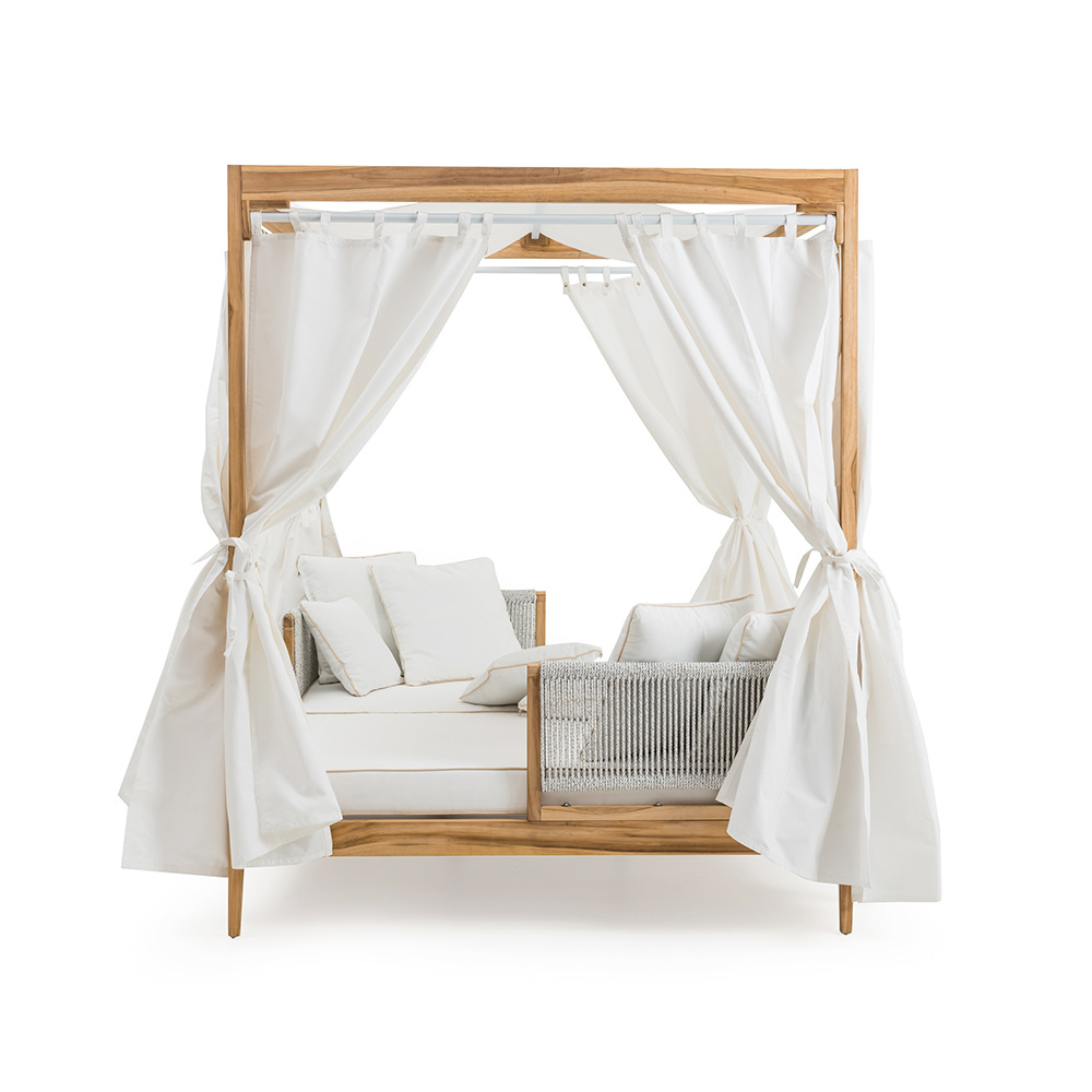 Një shtrat dite i projektuar për ata që kërkojnë një stil të matur dhe elegant që mund t'i japë hapësirave të tyre të jashtme një theks freskie. Kjo tendë i jep vetes kopshte, tarraca dhe veranda pasuruese të përsosura, duke u dëshmuar gjithashtu e përsosur pranë pishinës ku krijon një atmosferë të mrekullueshme mikpritëse dhe harmoni të përsosur me mjedisin përreth. Dizajni i tij i rafinuar e bën atë një plotësues të përsosur për të kompletuar me karakter dhe stil çdo hapësirë të jashtme, private dhe kontraktuale, duke i dhënë jetë një arredimi ekskluziv dhe të detajuar .