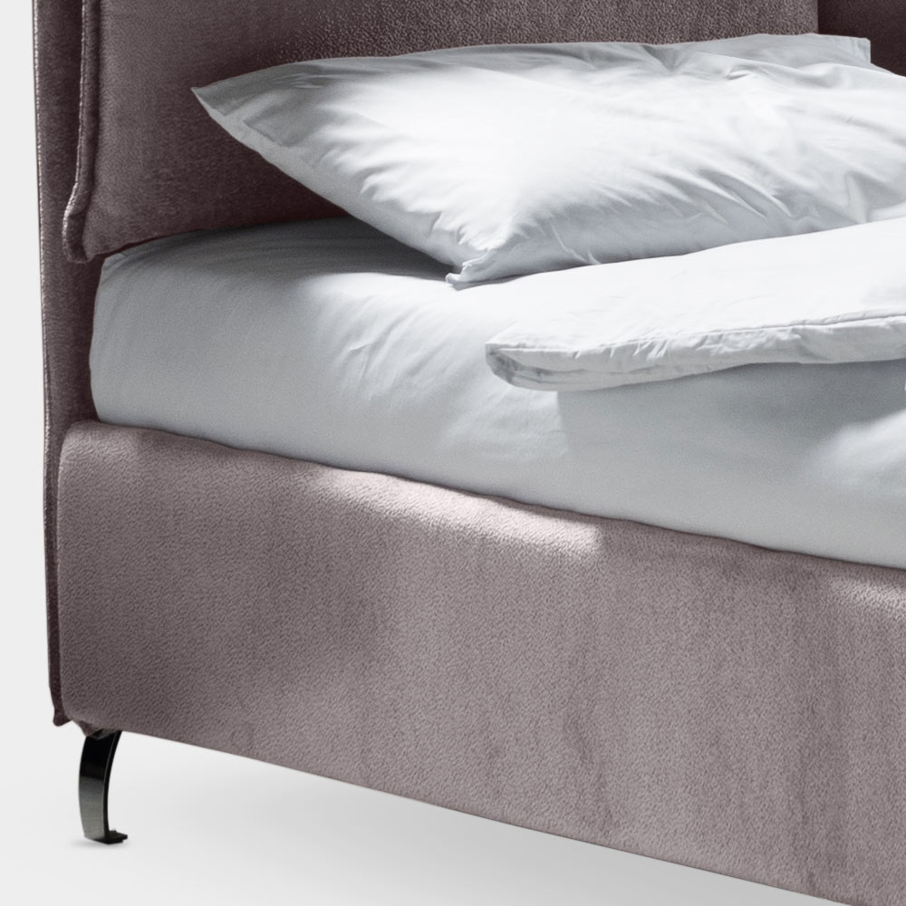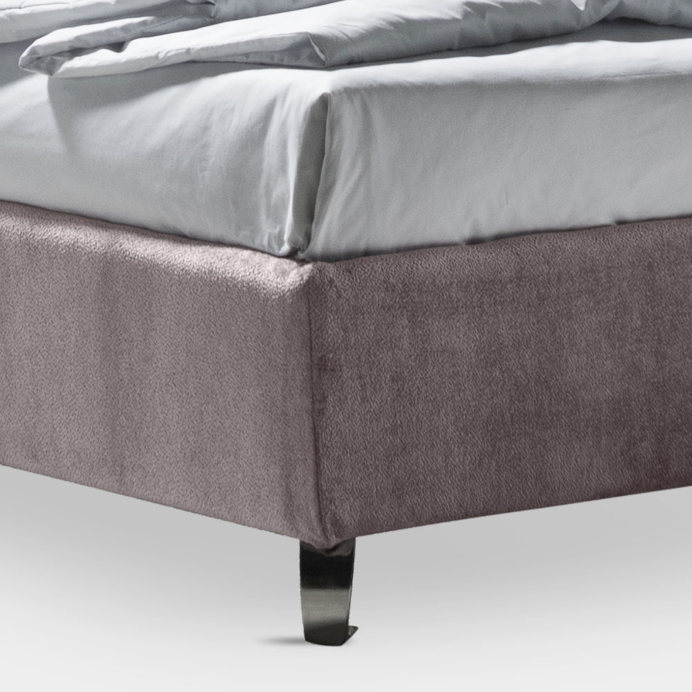 Krevat dopio me bazë dinamike , kuti magazinimi,këmbë metalike me finiturë çeliku të lëmuar (lartësia 12 cm) dhe ballë krevati në pëlhurë rezistente ndaj zjarrit, është bërë me dy jastëkë të butë me një mbështjellës rrethues të fiksuar me futje praktike ngjitëse Velcro që mundësojnë heqje të përshtatshme dhe të lehtë. . Ky shtrat është mishërimi i rehatisë dhe dizajnit bashkëkohor. Është një kombinim i përsosur i përsosjes dhe funksionalitetit , i krijuar për të ofruar netë relaksi të pastër dhe stil të pashembullt.