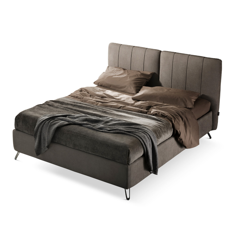 Krevat dopio me bazë dinamike , kuti magazinimi,këmbë metalike me finiturë prej çeliku të lëmuar (lartësia 12.3 cm) dhe krevati i marrë falë një mbushjeje speciale, të bërë me profile vertikale me kordon, të cilat i japin një efekt estetik origjinal, rezistent ndaj ujit dhe njollave. pëlhurë. Ky shtrat është mishërimi i rehatisë dhe dizajnit bashkëkohor. Është një kombinim i përsosur i përsosjes dhe funksionalitetit , i krijuar për të ofruar netë relaksi të pastër dhe stil të pashembullt.
