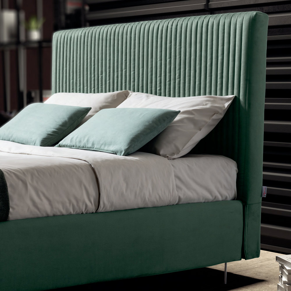 Krevat dopio me bazë dinamike , kuti magazinimi,këmbë metalike me finiturë prej çeliku të lëmuar (lartësia 12 cm) dhe një kofshë e trashë prej pëlhure hipoallergjike, rezistente ndaj njollave, që merr frymë dhe nuk tkurret , e bërë me një proces të veçantë mbushjeje me tegela me shirita të ngushtë dhe vertikale të shumta linja që nxjerrin në pah linjën e saj në modë dhe origjinale. Ky shtrat është mishërimi i rehatisë dhe dizajnit bashkëkohor. Është një kombinim i përsosur i përsosjes dhe funksionalitetit , i krijuar për të ofruar netë relaksi të pastër dhe stil të pashembullt.