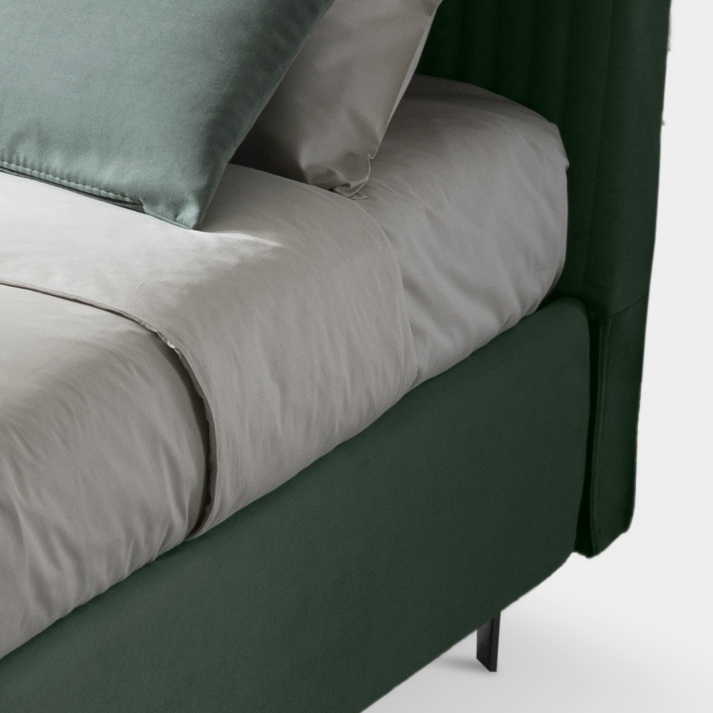 panelet e poshtme të kutisë së ruajtjes, të çertifikuara në klasën E1 me përmbajtje shumë të ulët formaldehidi, janë prej laminati 10,5 mm të trashë, në ngjyrë gri që të përputhet me pëlhurën e brendshme të kornizës së shtratit, për të lejuar pastrimin dhe higjienën e lehtë duke përdorur një leckë të zakonshme të lagur për pluhur.