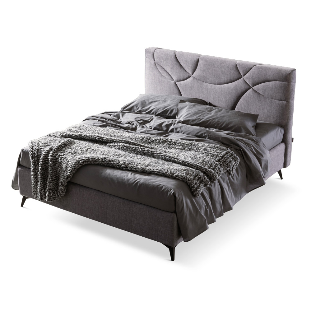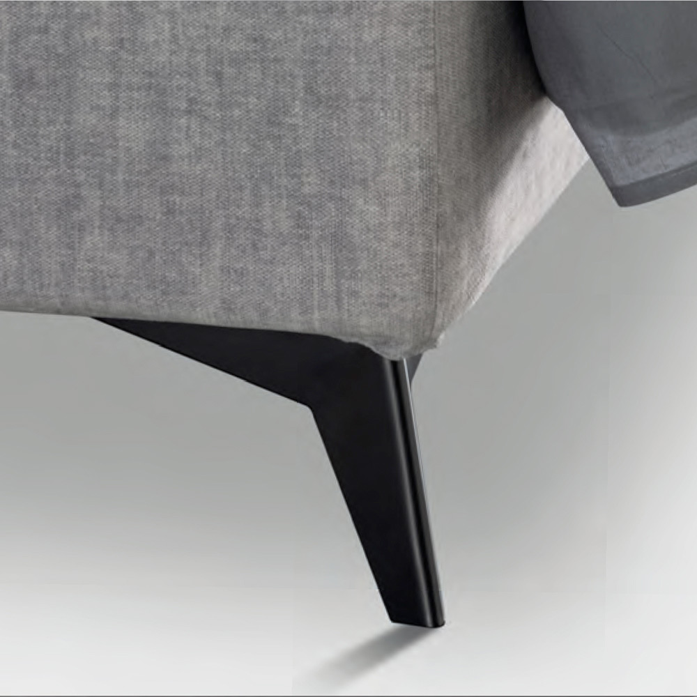 Krevat dopio me bazë dinamike , kuti magazinimi, këmbë metalike me finiturë antracit (lartësia 13,5 cm) dhe ballinë e trashë në pëlhurë rezistente ndaj zjarrit, e bërë me një proces të veçantë jorganimi me kthesa të kryqëzuara që nxjerr në pah butësinë e tij dhe i jep një personalitet të fortë. Ky shtrat është mishërimi i rehatisë dhe dizajnit bashkëkohor. Është një kombinim i përsosur i përsosjes dhe funksionalitetit , i krijuar për të ofruar netë relaksi të pastër dhe stil të pashembullt.