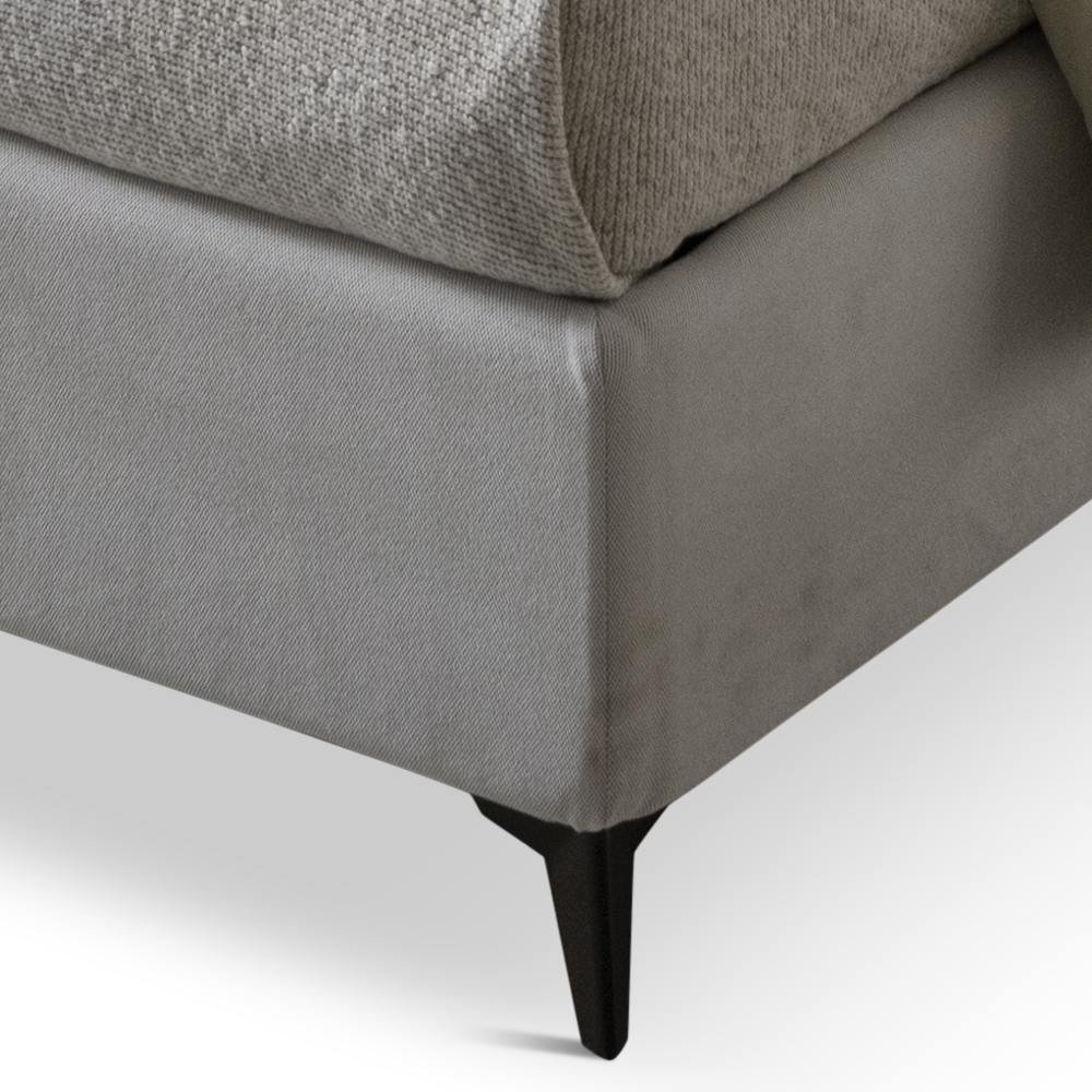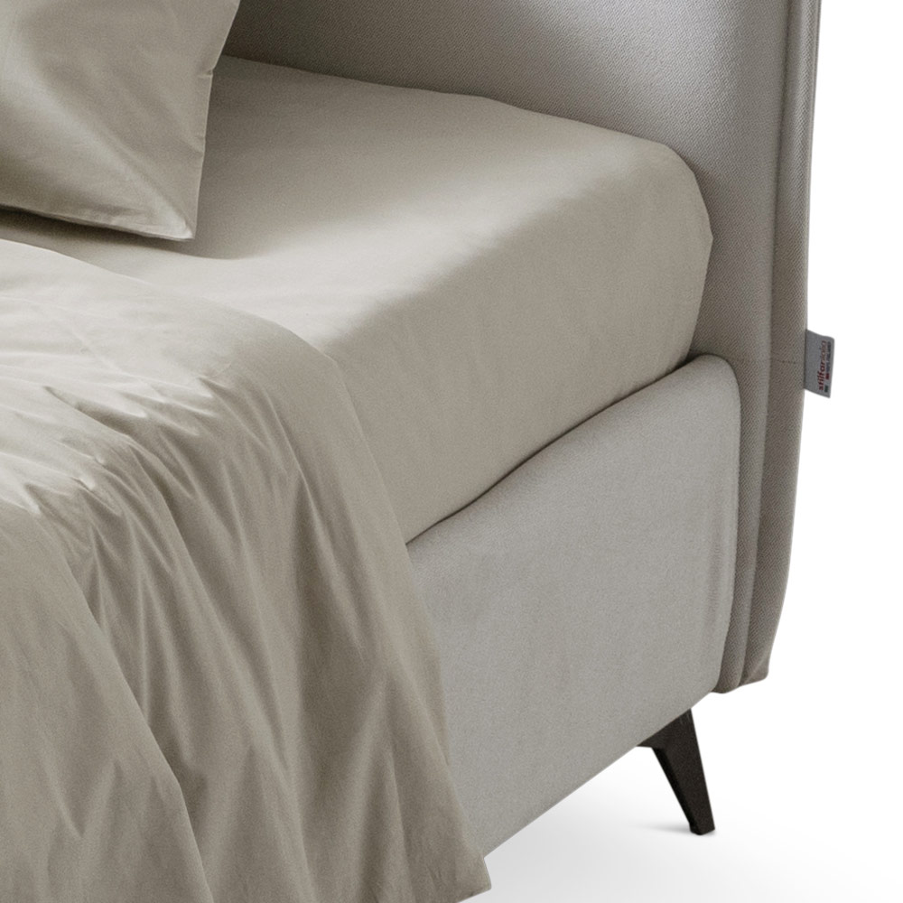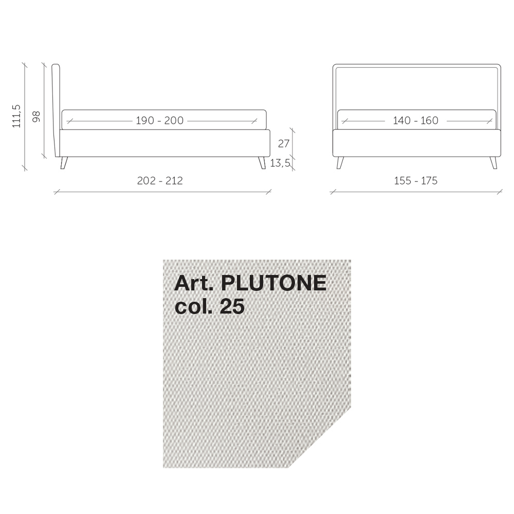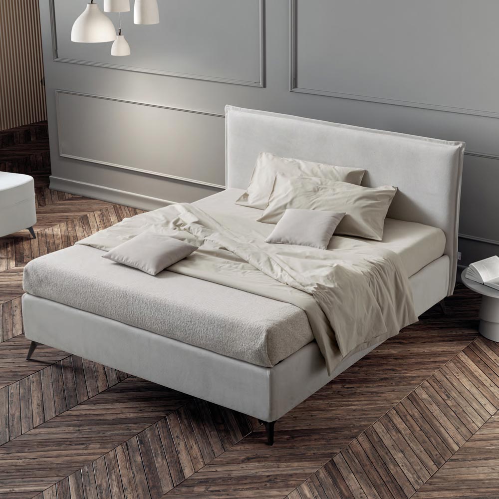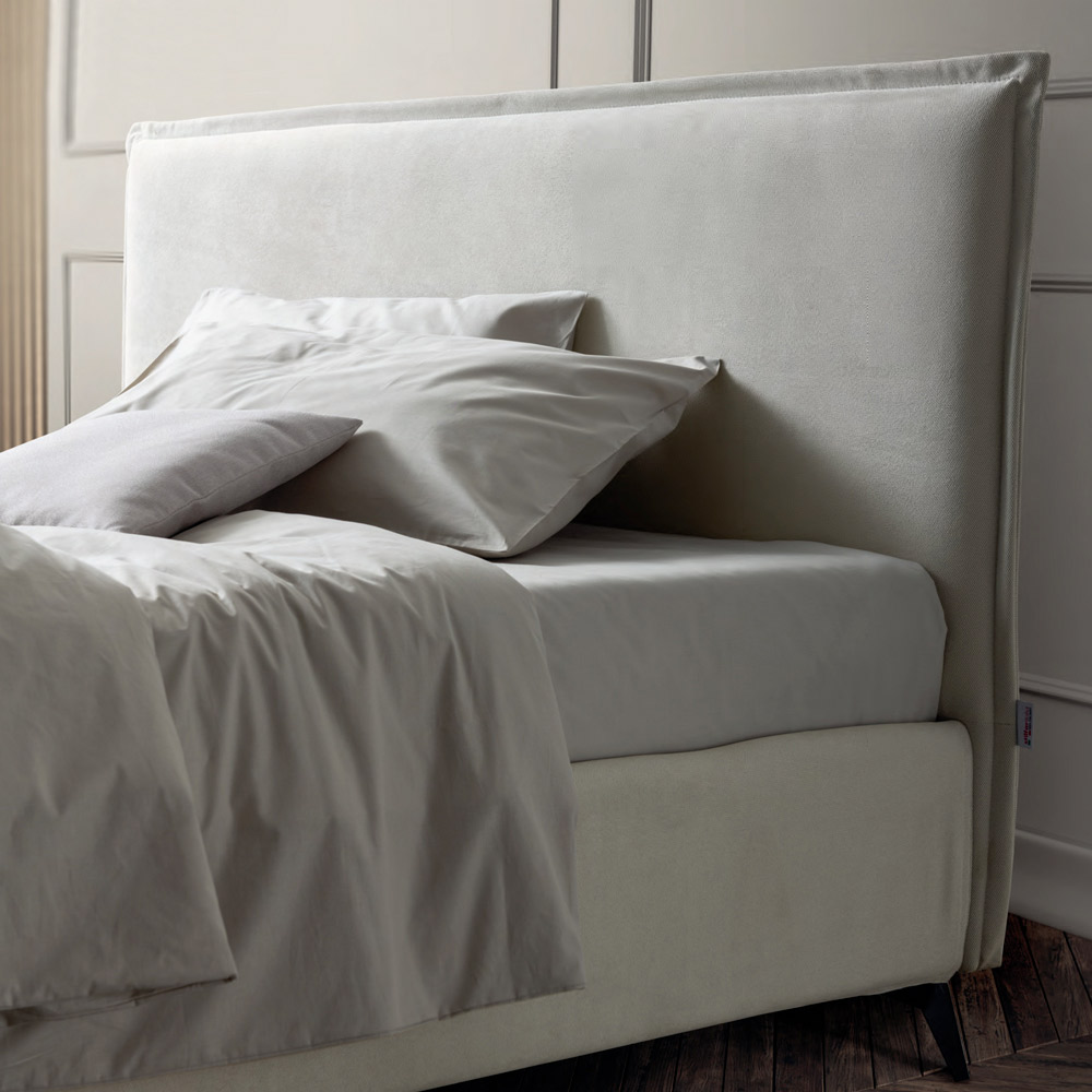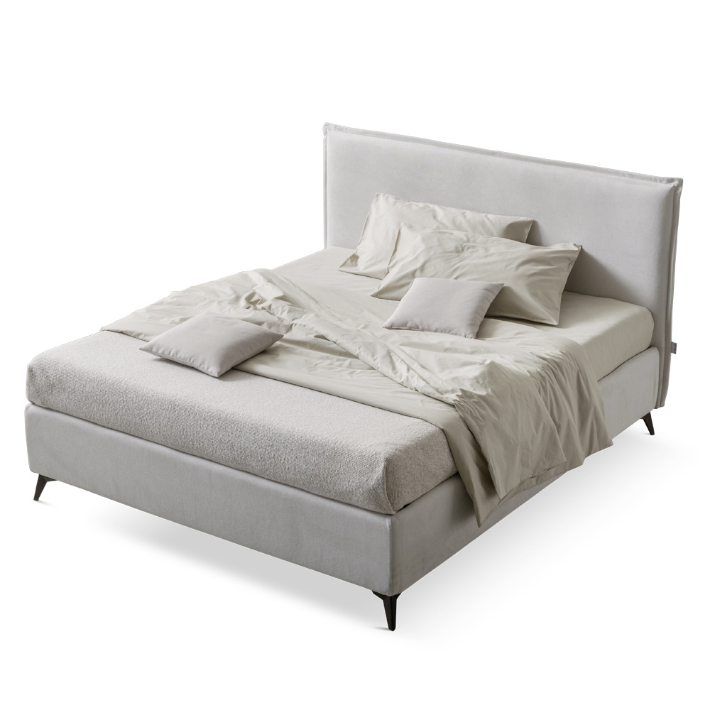 Krevat dopio i mbuluar me pëlhurë rezistente ndaj ujit dhe njollave me bazë dinamike , kuti ruajtëse dhe këmbë metalike me fije antracit (lartësia 13,5 cm). Ky shtrat është mishërimi i rehatisë dhe dizajnit bashkëkohor. Është një kombinim i përsosur i përsosjes dhe funksionalitetit , i krijuar për të ofruar netë relaksi të pastër dhe stil të pashembullt.