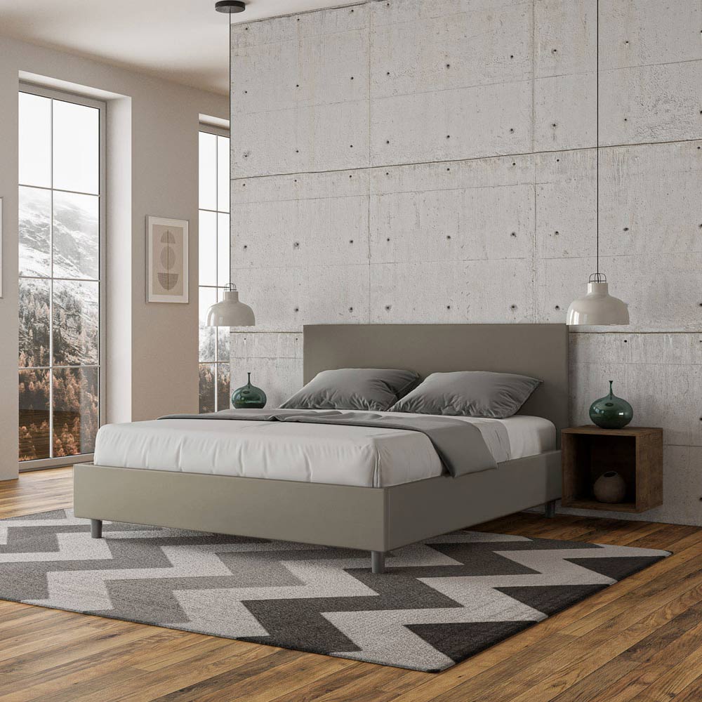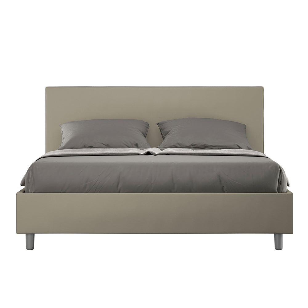 Krevat dopio i mbushur 160x200 cm i bërë nga panele kartoni dhe i mbuluar me lëkurë imituese , i prodhuar tërësisht në Itali. Ky krevat dopio ka një kornizë të mbushur dhe është një ikonë e stilit të thjeshtë, por elegant. Me një kokë koke prej lëkure artificiale , ky krevat përshtatet në mënyrë të përsosur në çdo hapësirë, duke shtuar një prekje dalluese klasi dhe luksi, tipike italiane. Mirëmbajtja është e lehtë: thjesht fshijeni me një leckë mikrofibre për të ruajtur bukurinë e tij me kalimin e kohës.