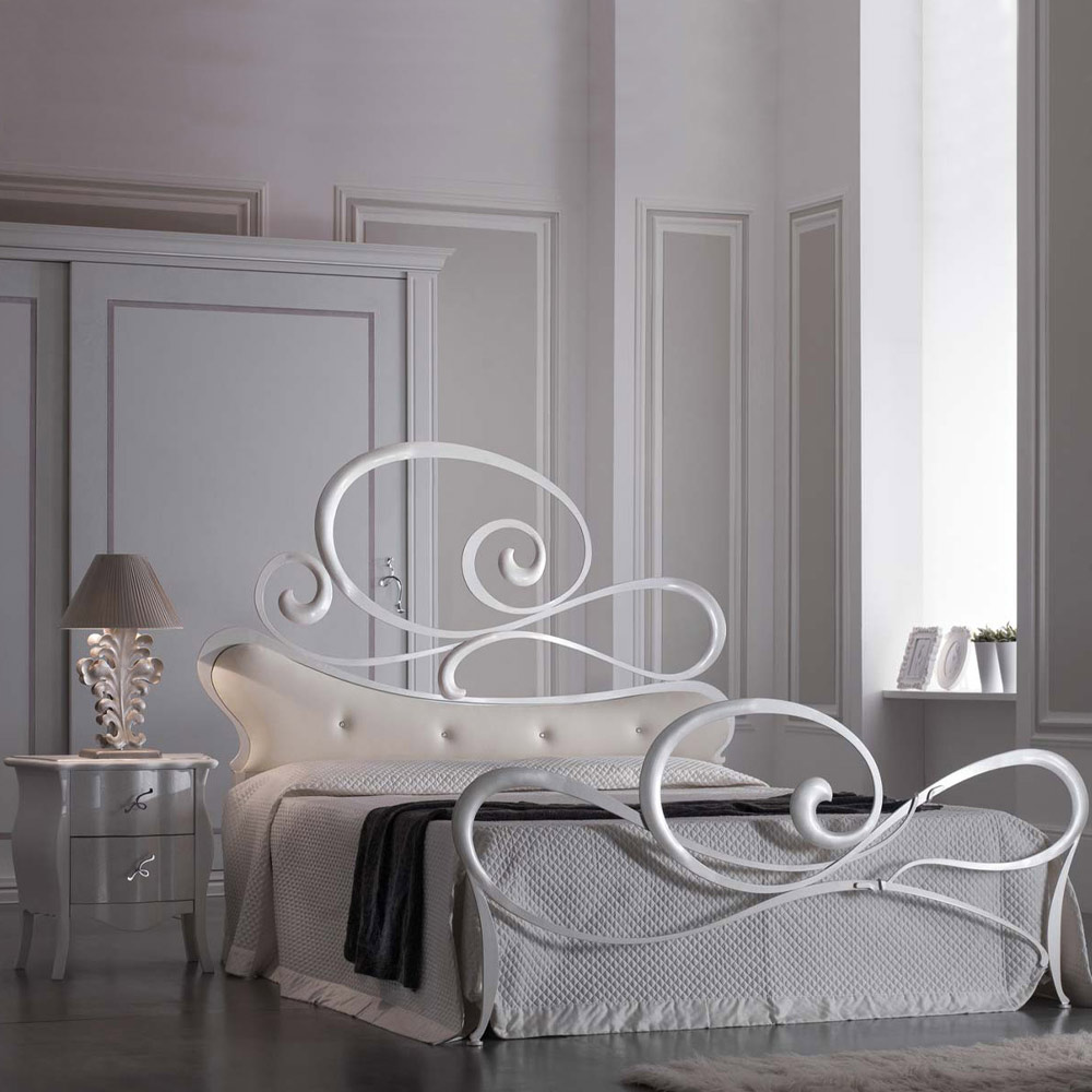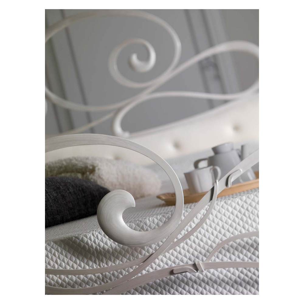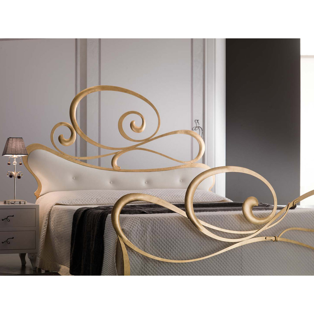 Krevat dopio i bërë me krevate dhe dërrasë të koordinuar me 80% hekur të ngurtë dhe 20% përfundim tubular me bojë gjethesh të punuar me dorë dhe veshje prej lëkure të vërtetë në fund të bardhë borë. Spar është i drejtë ovale me mbështetëse të salduara si standard. Ky element ndërthur një lojë linjash të lakuara dhe të përkulura me natyrën statike të lëkurës, duke krijuar një shtrat me ndikim të madh vizual dhe skenografik. Dhoma e gjumit është e pasuruar me një atmosferë unike që do t'ju përkëdhelë ndërsa flini.