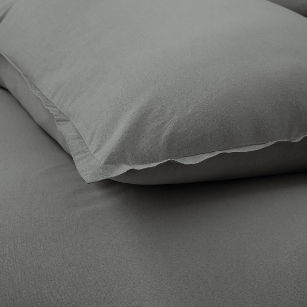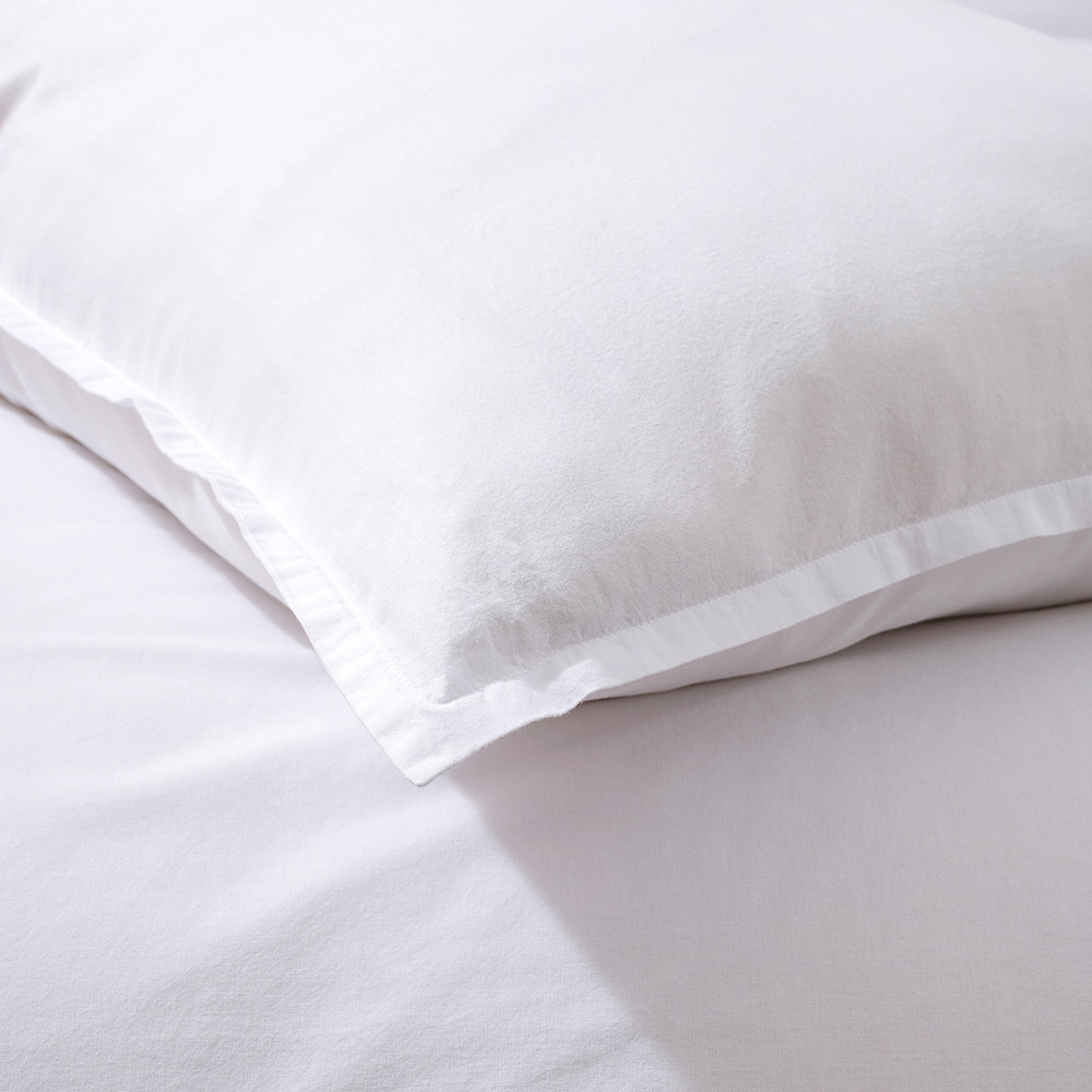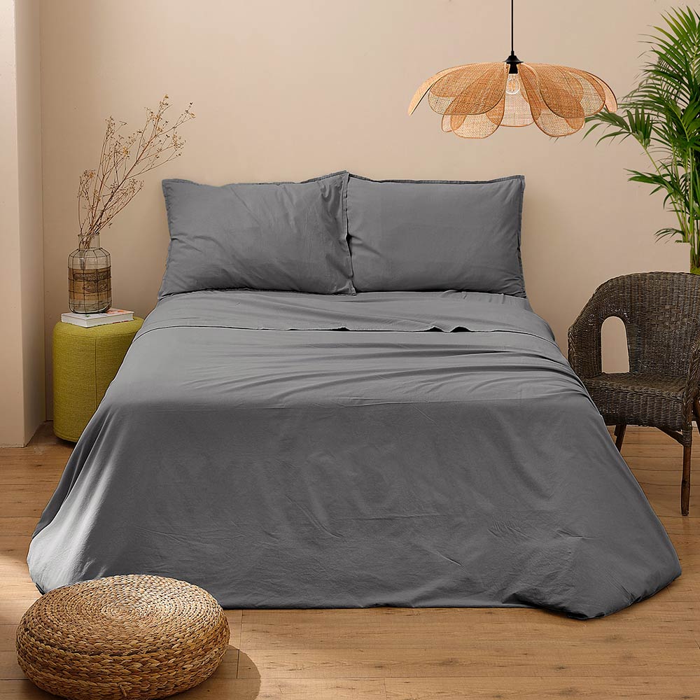 komplet krevate dyshe prej pambuku të pastër të lyer me veshje . Tekstura e butë dhe e frymëmarrjes e pambukut siguron rehati të pashoqe, ndërsa teknika e ngjyrosjes së veshjeve jep një ngjyrë të pasur dhe afatgjatë që zgjat larje pas larjes. Perfekt për ata që duan të kombinojnë stilin dhe funksionalitetin, ky grup përfshin çarçafë sipër dhe poshtë dhe këllëfë jastëku koordinues, të gjitha të dizajnuara për t'ju ofruar rehati maksimale dhe për t'i shtuar një prekje të sofistikimit dhomës tuaj.