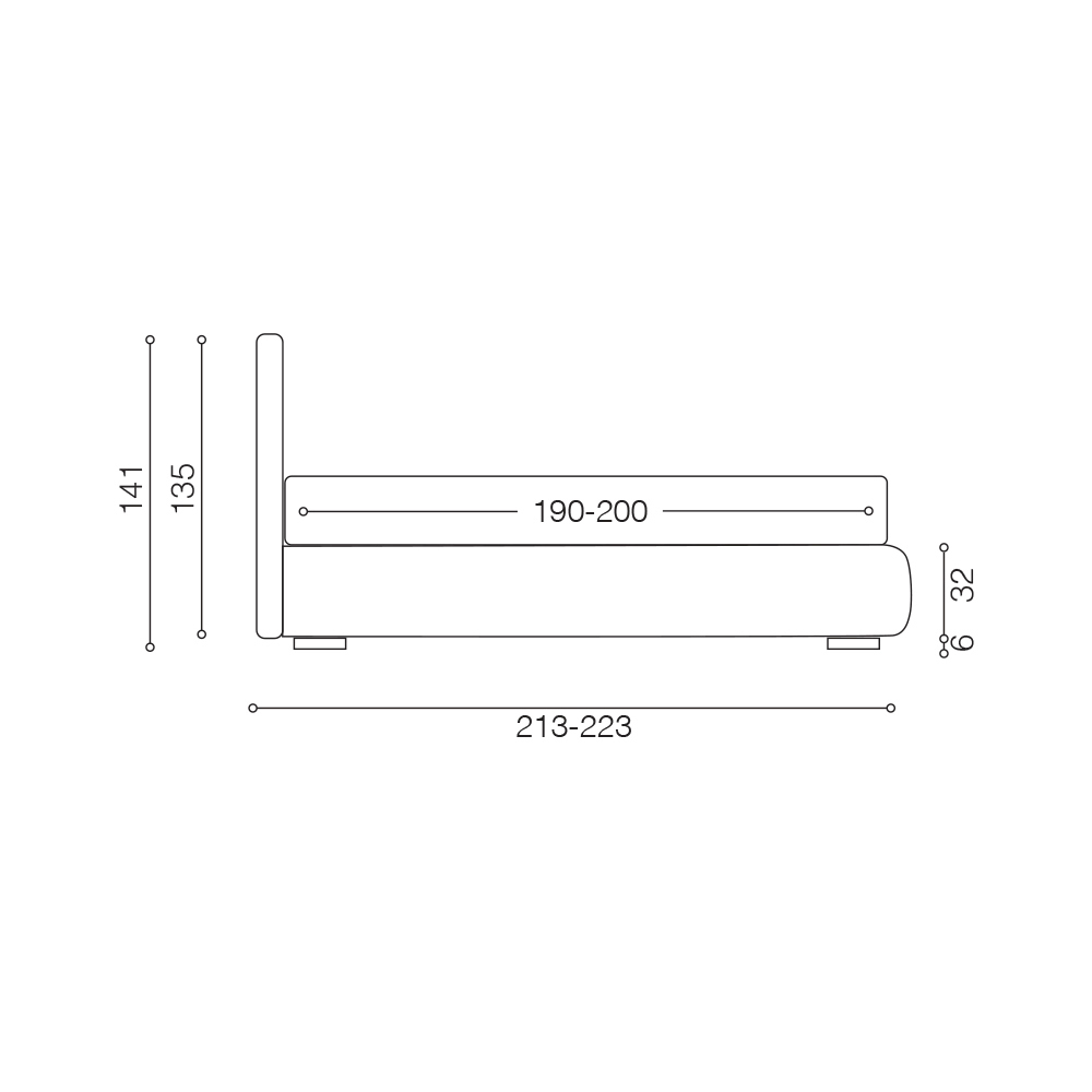 Korniza e krevatit, 32 cm e lartë, ka mbulesa lehtësisht të lëvizshme (krevat e kokës që nuk hiqet). Këmbët janë prej druri dhe janë 6 cm të larta.