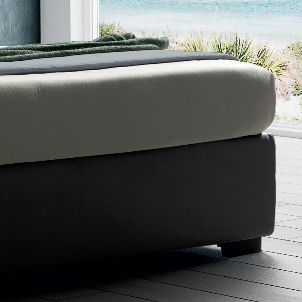 - Me kuti ruajtëse ngritëse : është zgjidhja ideale për optimizimin e hapësirës, duke e mbajtur dhomën e gjumit gjithmonë të rregullt. Në fakt, brenda kutisë mund të ruhen batanije, rroba, jastëkë etj. Kontejneri është i pajisur me një bazë ngritëse ortopedike, prej hekuri tubular i lyer me pluhur epoksid në 200° dhe ka dy shufra përforcuese vertikale hekuri të veçanta dhe të barabarta. Tuba metalike ka përmasa 40x28 mm. Rripat janë të plota dhe janë bërë nga kompensatë thupër 68x8 mm. Ekziston gjithashtu mundësia e blerjes së kabinetit opsional ekskluziv dhe novator sipas kërkesës . Është një gardërobë e vërtetë me dyer rrëshqitëse, e vendosur brenda kutisë së kontejnerit. Ka përmasa L161 x D99 x H18 cm dhe është e pajisur me disa ndarje për organizimin e rrobave, këpucëve, peshqirëve etj. Mund të instalohet vetëm në shtretër të përshtatshëm për një bazë/dyshek me rrasa 160, 170, 180 ose 200 cm. Na kontaktoni për më shumë informacion.