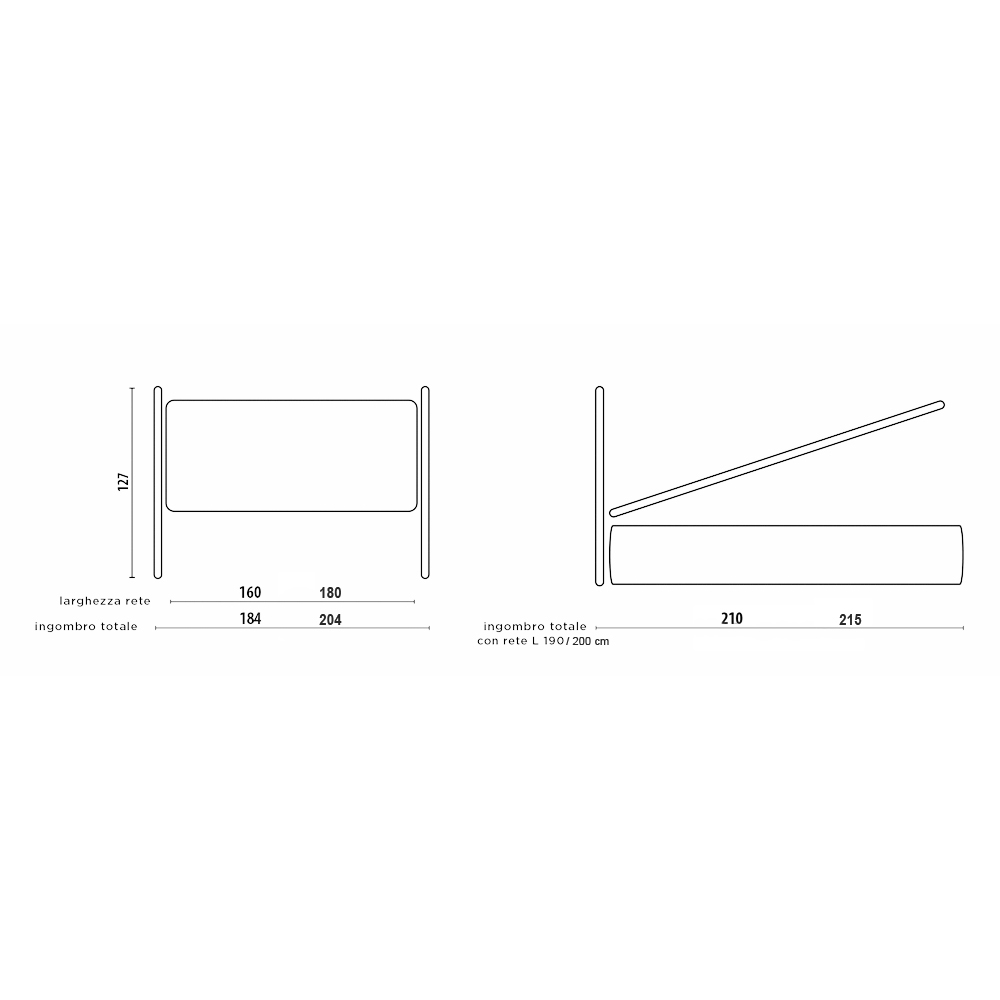 Madhësitë e disponueshme:- 184 x 210 x lartësia 127 cm - bazamenti i krevatit 160x190 cm