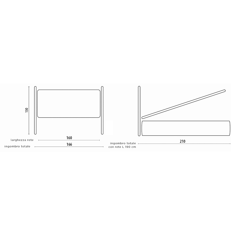 Dimensionet:- 166 x 210 x lartësi 130 cm - bazamenti i krevatit 160x190 cm