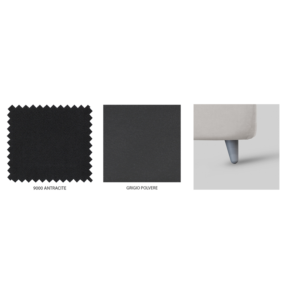 i mbuluar me pëlhurë ngjyrë antracit me këmbë polipropileni gri.