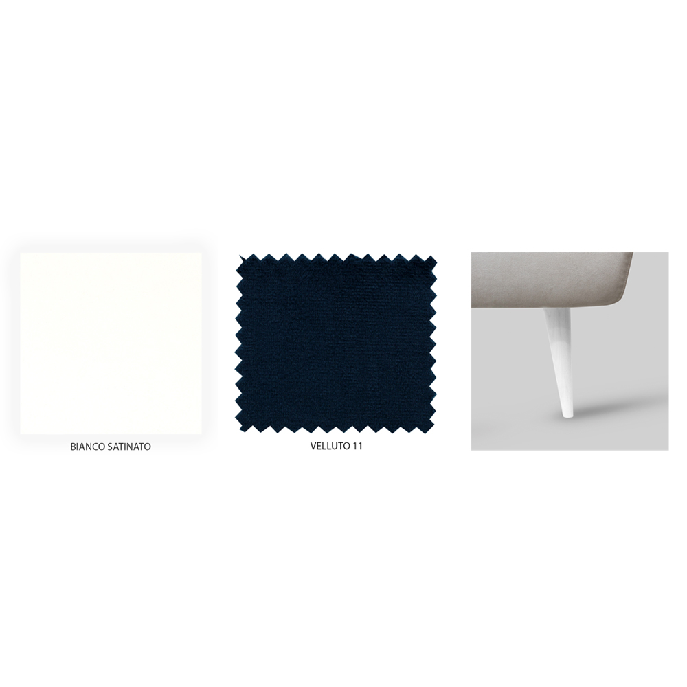- Modeli H 25 këmbë: krevati i bardhë saten, kornizë krevati gri/blu 11 prej kadifeje dhe këmbë të bardha prej druri