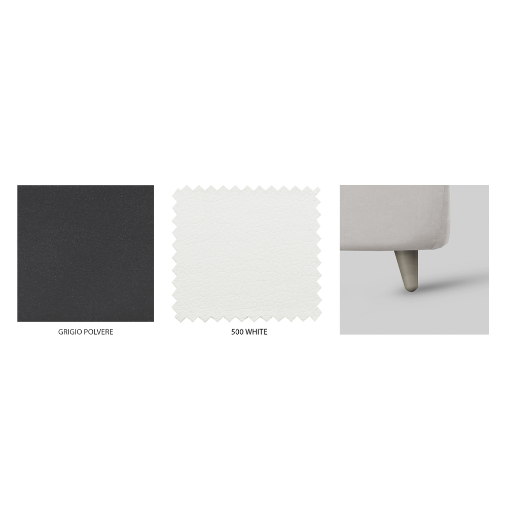 Përfundimet e disponueshme:- Modeli H 11 këmbë: ballë krevati gri pluhur, kornizë e bardhë e krevatit prej lëkure eko dhe këmbë polipropileni ngjyrë gri pëllumbi