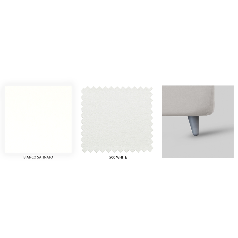 Përfundimet e disponueshme:- Modeli H 11 këmbë: krevati i bardhë saten, kornizë krevati e bardhë prej lëkure eko dhe këmbë polipropileni gri