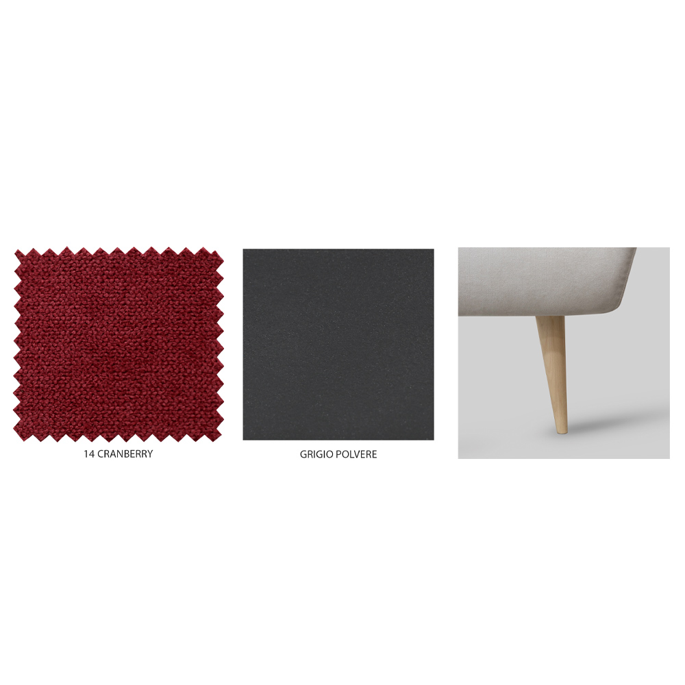 - Modeli H 25 këmbë: ballinë gri pluhur, kornizë shtrati në pëlhurë boronicë dhe këmbë natyrale prej druri