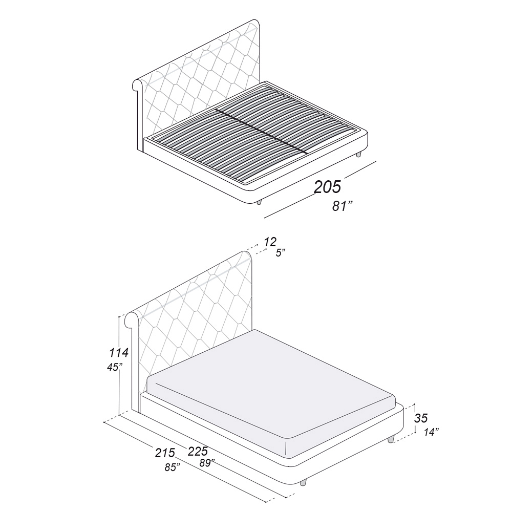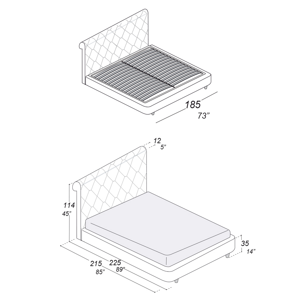 gjatësia: 205 cm x thellësia: 225 cm x lartësia: 114 cm - i përshtatshëm për një dyshek 180x200 cm