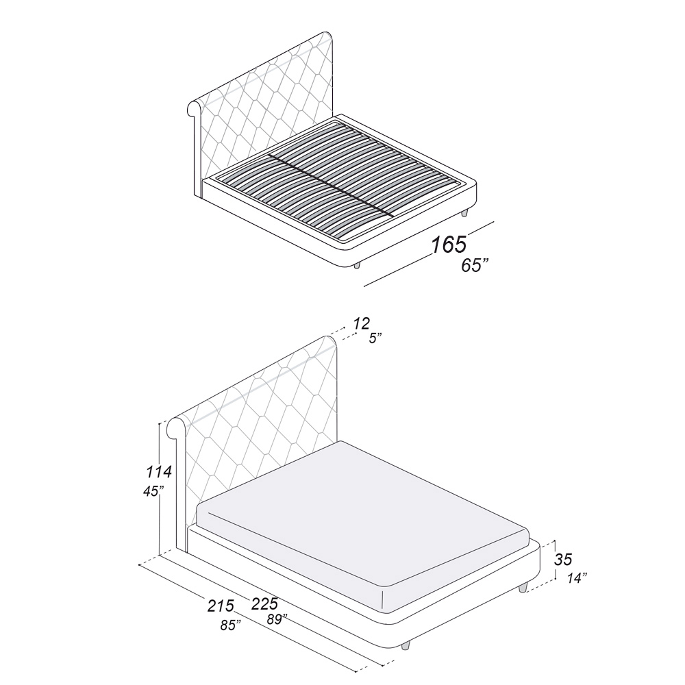 gjatësia: 165 cm x thellësia: 225 cm x lartësia: 114 cm - e përshtatshme për një dyshek 140x200 cm